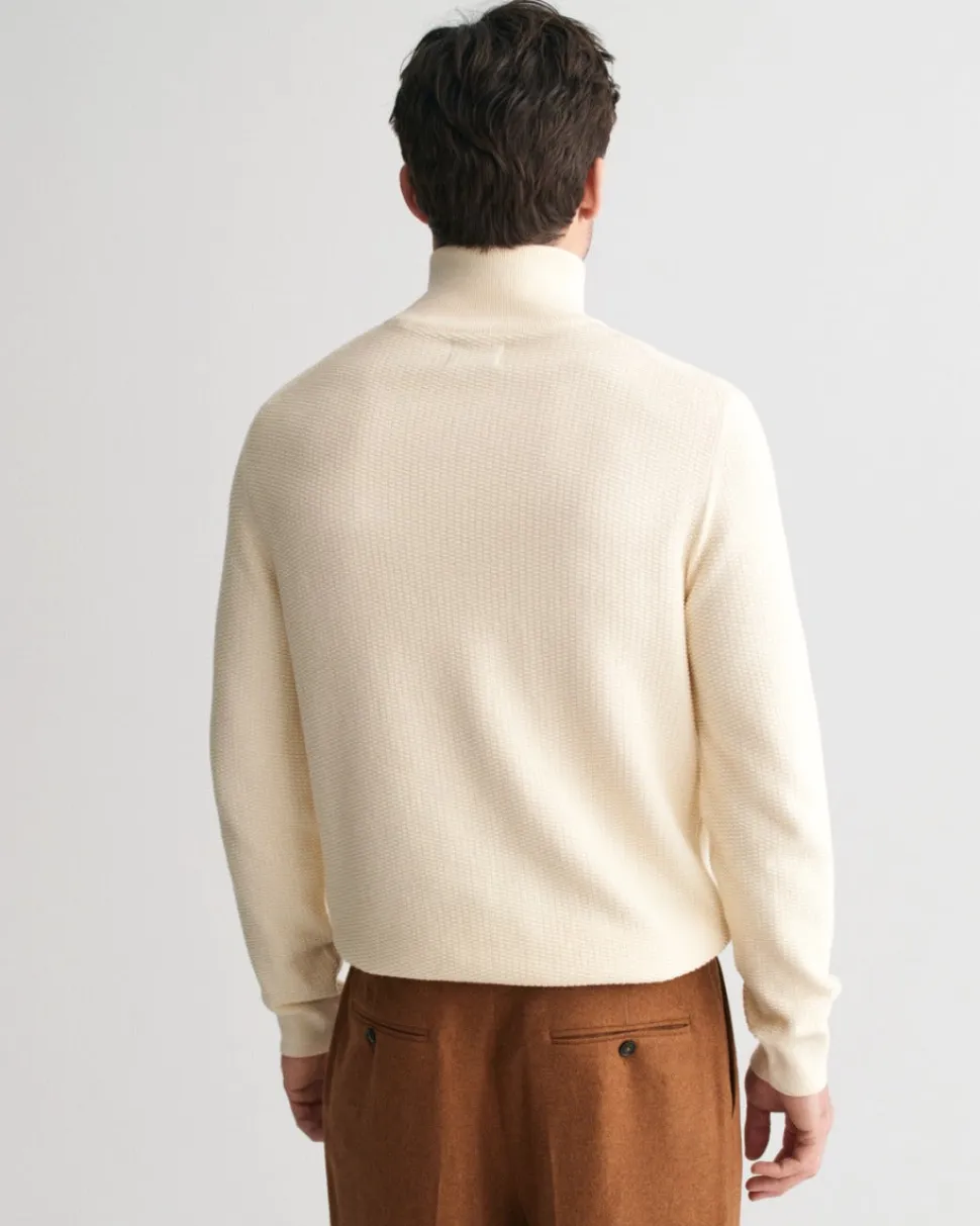 Gantin regular fit neulepuzero half zip kauluksella. Ribattu helma ja hihansuut. Brodeerattu Gant logo rinnassa.