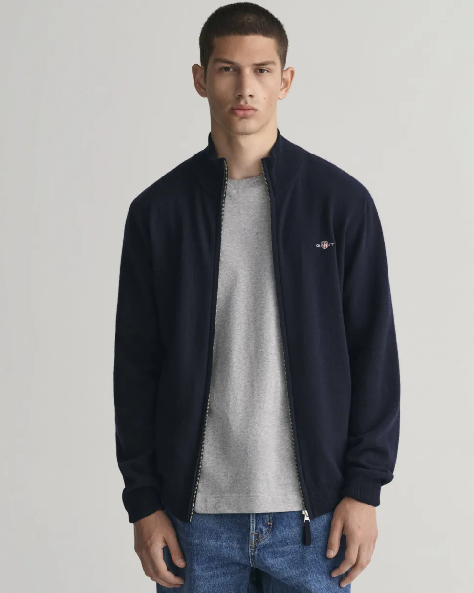 Indigo Cotton Structure Crewneck -neuletakki, jossa on GANT-brodeerattu merkki helman lähellä ja resori kaulus-, helmassa ja hihansuissa.