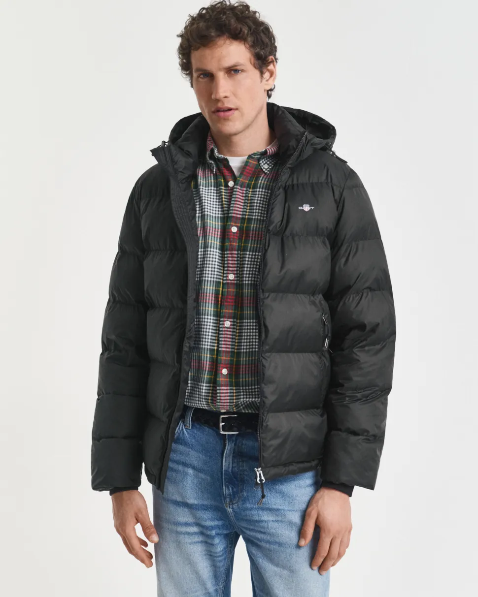 Ulkoiluun sopivassa lantiopituisessa Active Cloud ‑takissa on regular fit ‑mitoitus ja vettä hylkivä viimeistys. Takissa on kokovuori, toppaus, irrotettava huppu ja sivuilla vinot vetoketjutaskut. Muita ominaisuuksia ovat tyylikäs vetoketjukiinnitys edessä, säältä suojaavat hihansuut ja GANT-kirjailu rinnassa. Takissa on DWR (Durable Water Repellent) ‑pintakäsittely, joka auttaa hylkimään vettä kevyessä sateessa.