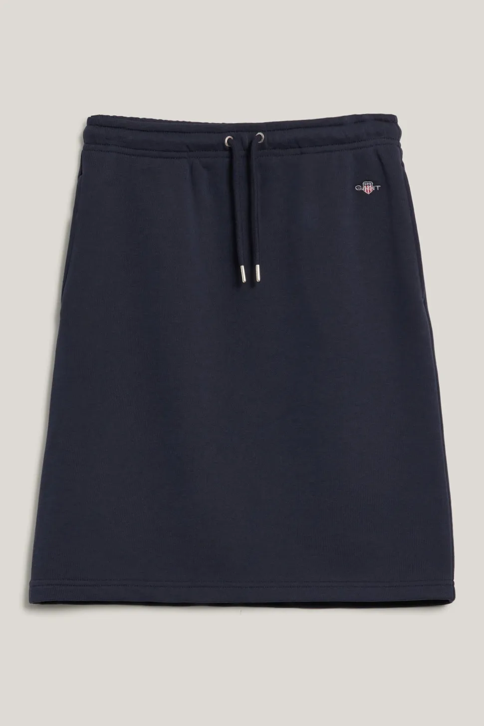 Hame on suoralinjainen ja vyötärön kiristysnauhoilla voit säätää istuvuuden haluamaksesi. Hametta täydentää alkuperäinen Gant-logo brodeerattuna ja sivutaskut. Pehmeä puuvillaneulos takaa maksimaalisen mukavuuden ja kestävyyden. Tässä hameessa käytetyt synteettiset kuidut ovat 100 % kierrätettyjä. Mukava ja käytännöllinen hame, joka lisää tyyliä rentoon asuusi.