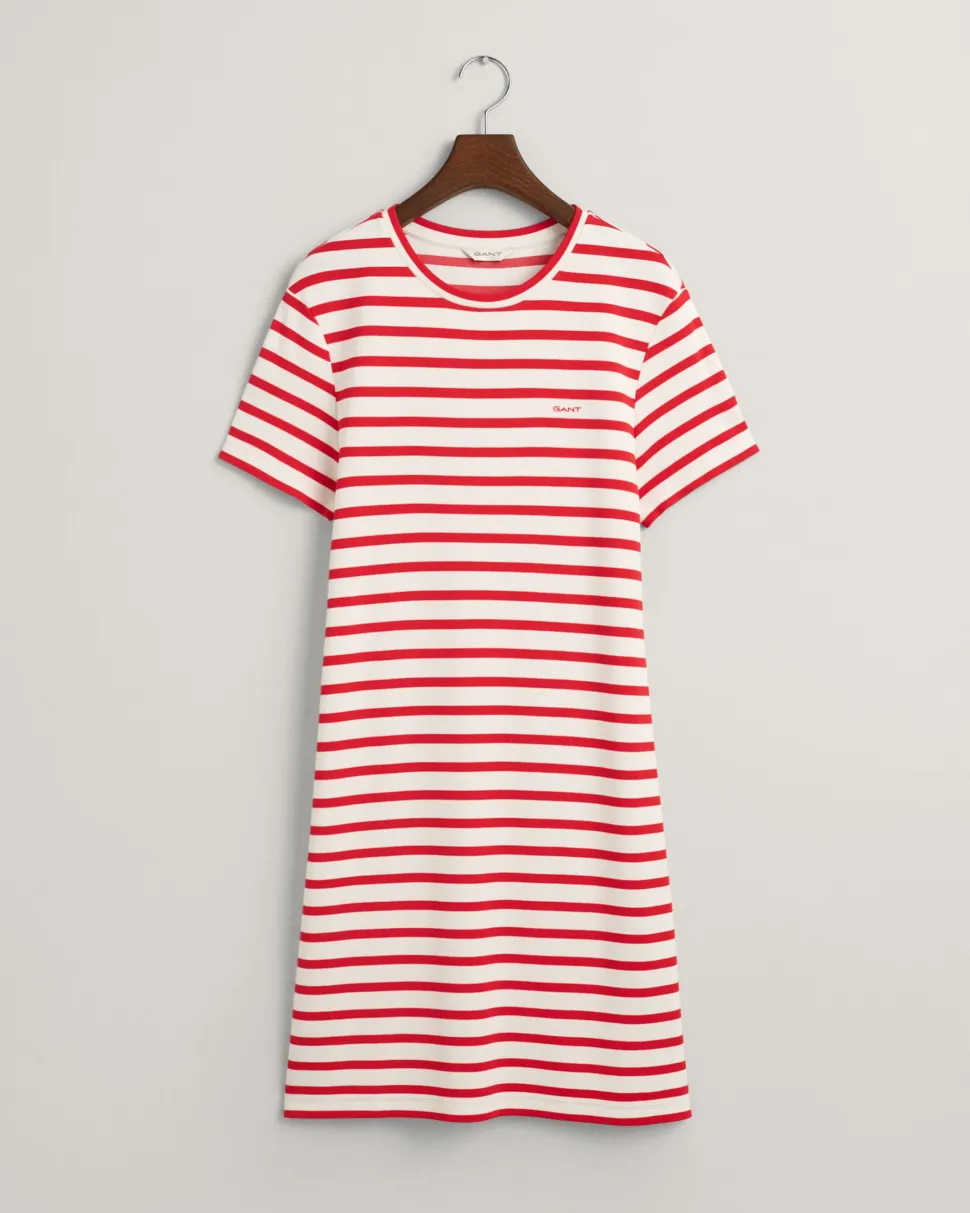Yksinkertaisen tyylikäs raidallinen paitamekko. Rinnassa Gant -logo.