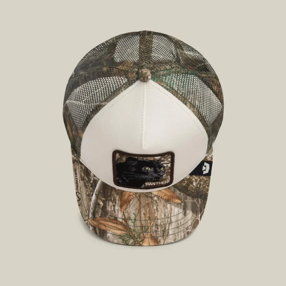 Valkoinen etupaneeli yhdistyy maastokuosiin, ja lippalakkia koristaa musta pantteri, joka ei tarvitse ääntä vakuuttaakseen olemuksensa. Tarkka katse, voimakas läsnäolo ja vaikutus jo lähellä – ennen kuin huomaatkaan. Maastokuvio tuo salaperäistä varautuneisuutta, pantterimerkki lisää voimaa, ja kokonaisuus huokuu itsevarmuutta, joka toimii parhaiten silloin, kun kukaan ei katso.
