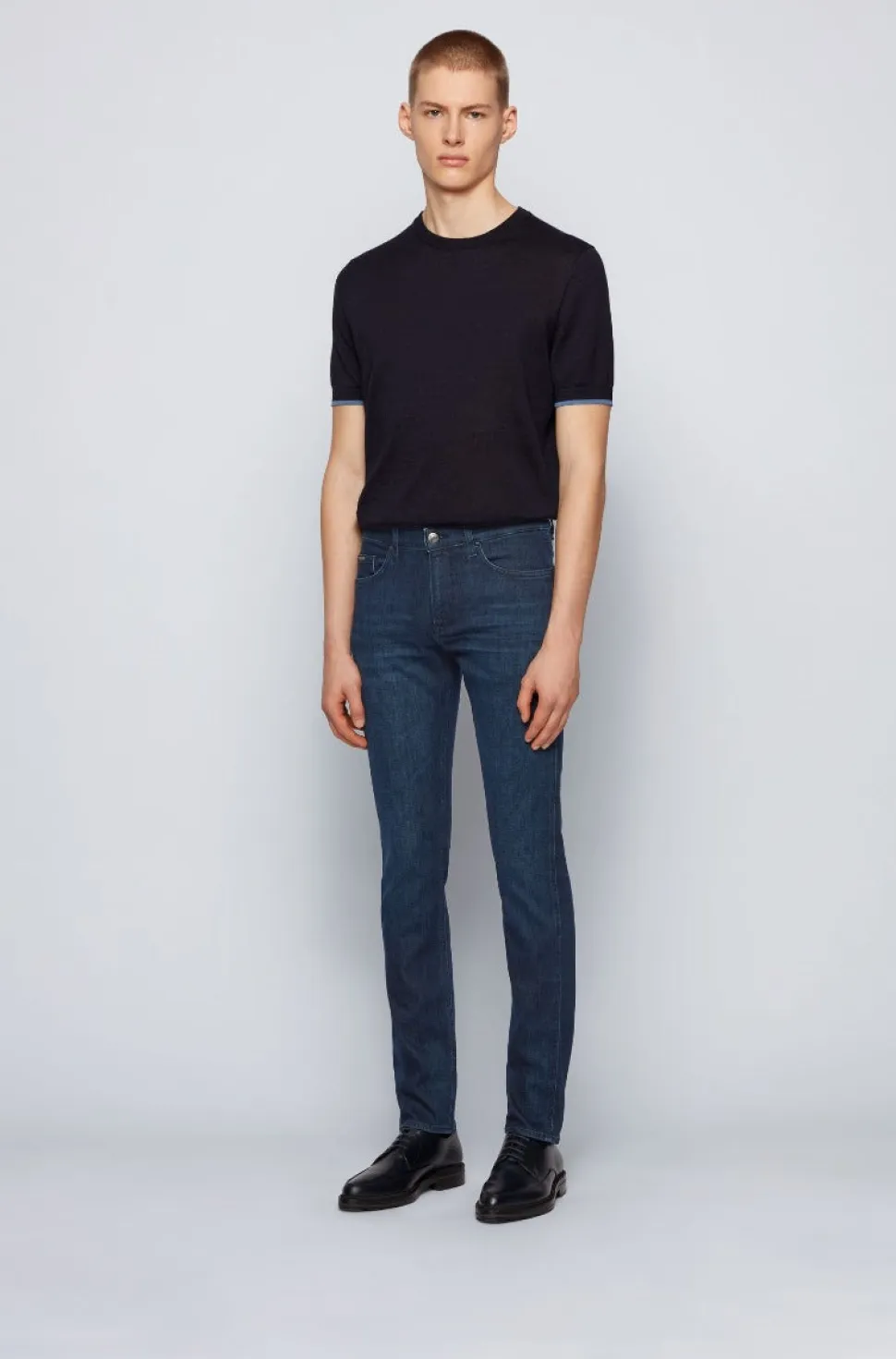 Hugo Bossin suoralahkeiset farkut, klassinen 5-taskumalli. Joustava materiaali, joka tuntuu miellyttävältä päällä. .