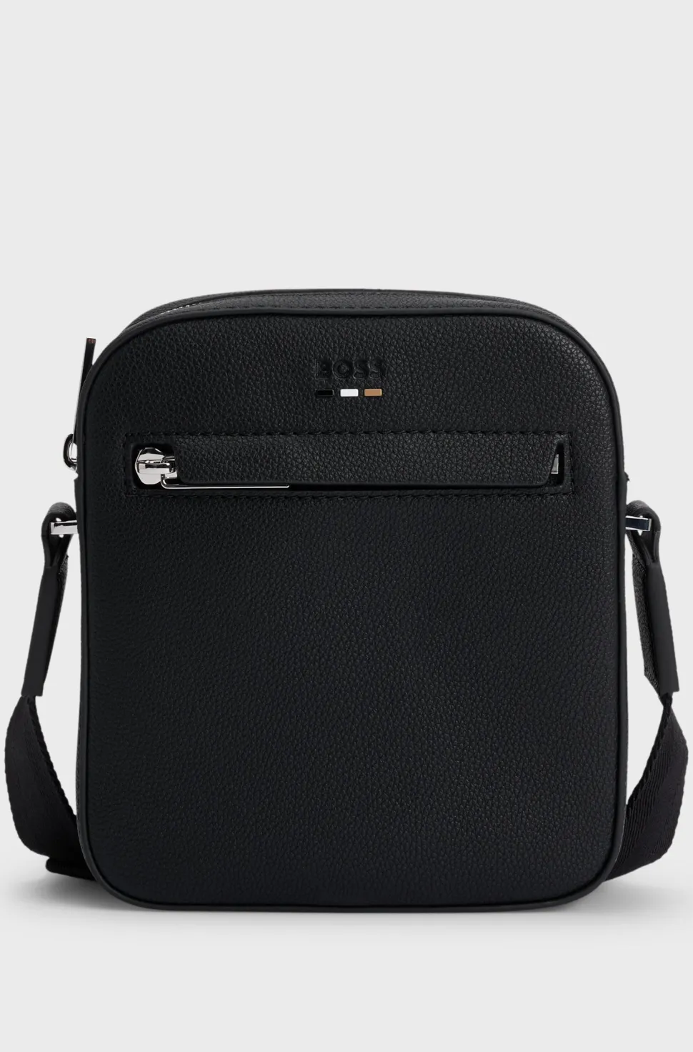 Tyylikkäs BOSS Menswear -reportterilaukku on viimeistelty rakeisella tekstuurilla. Ainutlaatuinen raita yksityiskohta kohokuvioidun logon alla. Säädettävä olkahihna. Mitat: 6 x 16 x 18 cm.