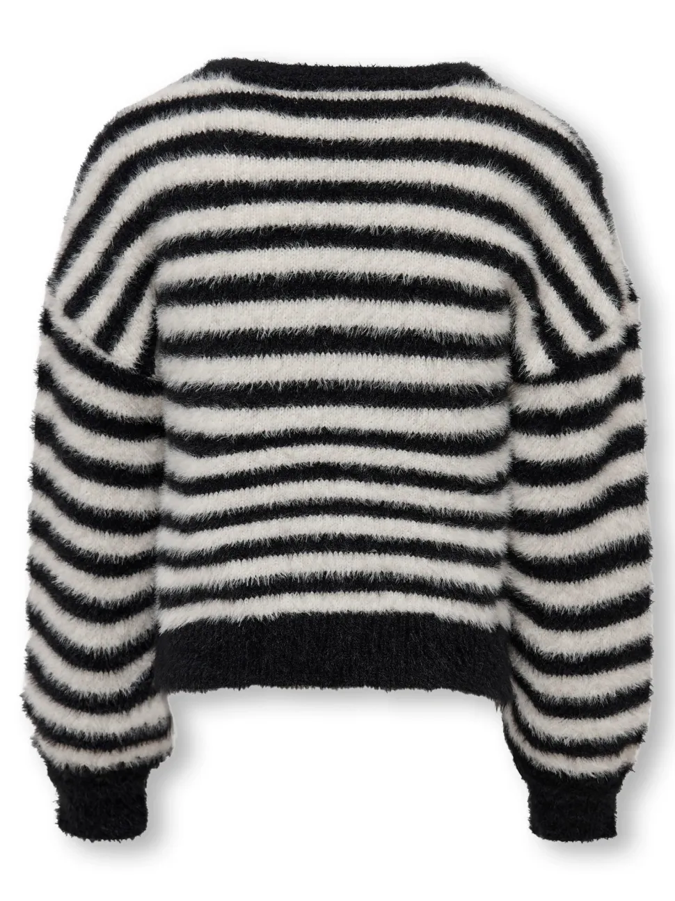 Neulepusero, jossa on o-pääntie, pitkät hihat, pudotetut olkapäät ja korkeat hihansuut.