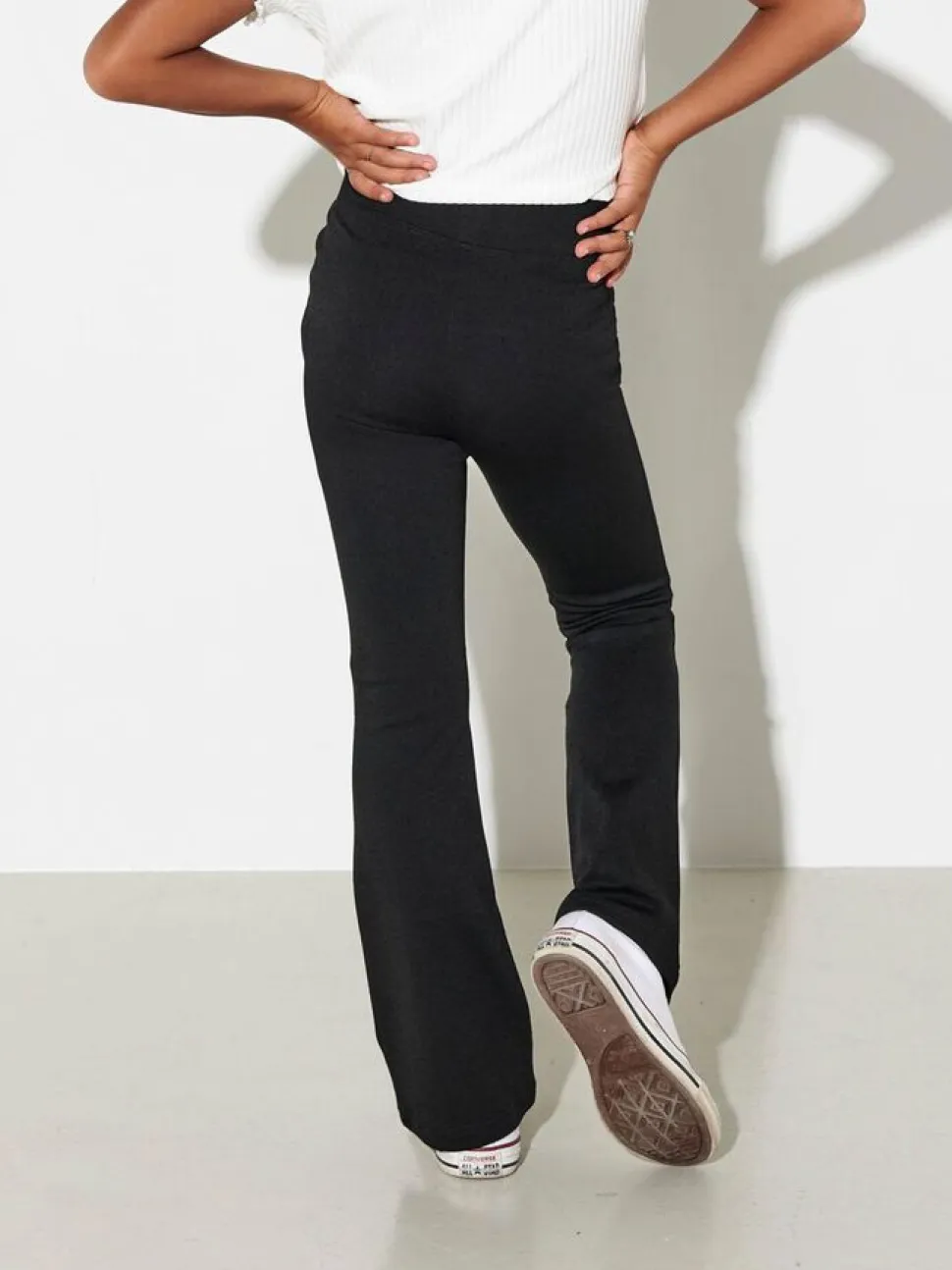 Kids Only tyttöjen housut levenevillä lahkeilla. Joustavaa materiaalia ja vyötäröllä resori. Sisältää vastuullista LENZING™ ECOVERO™ viskoosia.