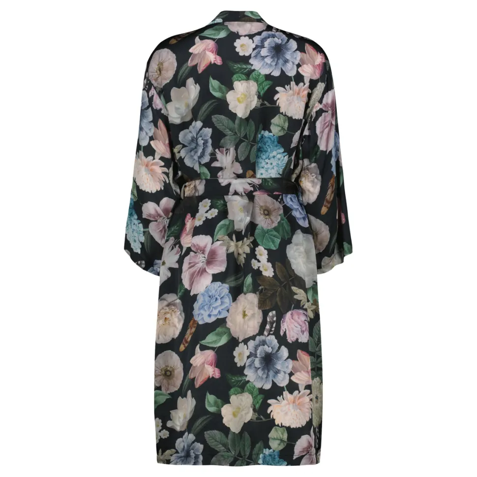 Klementin naisten upea kimono-henkinen aamutakki tuo ripauksen ylellisyyttä arkeen. Aamutakissa on leveät hihat, kietaisumalli, solmittava vyöt sekä etutaskut. Tyylin viimeistelee näyttävä kukkakuosi. Aamutakin niskassa on käytännöllinen ripustuslenkki.
