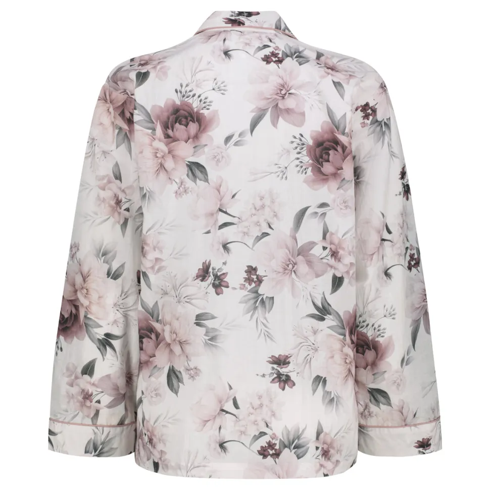 Klementin naisten ihanan kevyt ja pehmeä, kaksiosainen pyjama, joka on valmistettu miellyttävän tuntuisesta puuvillakankaasta. Pyjamassa on rennon väljä istuvuus ja upea valkopohjainen kukkakuosi. Pyjaman paita on rento kauluspaita, jossa napitus sekä taskut edessä ja leveät kimonohenkiset hihat. Suoralahkeisissa housuissa on joustava kuminauha sekä kiristysnauha vyötäröllä, ja käytännölliset taskut.