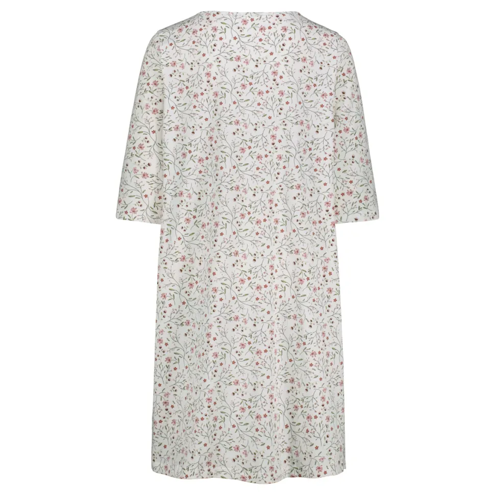 Klementin ihanan pehmeässä yöpaidassa on rennon väljä istuvuus, reilu pyöreä pääntie ja 3/4 -pituiset hihat. Mukavan väljä malli ja pehmeä materiaali saavat yöpaidan laskeutumaan miellyttävästi ja tuntumaan mukavalta päällä. Kankaassa on suloinen kukkakuosi.