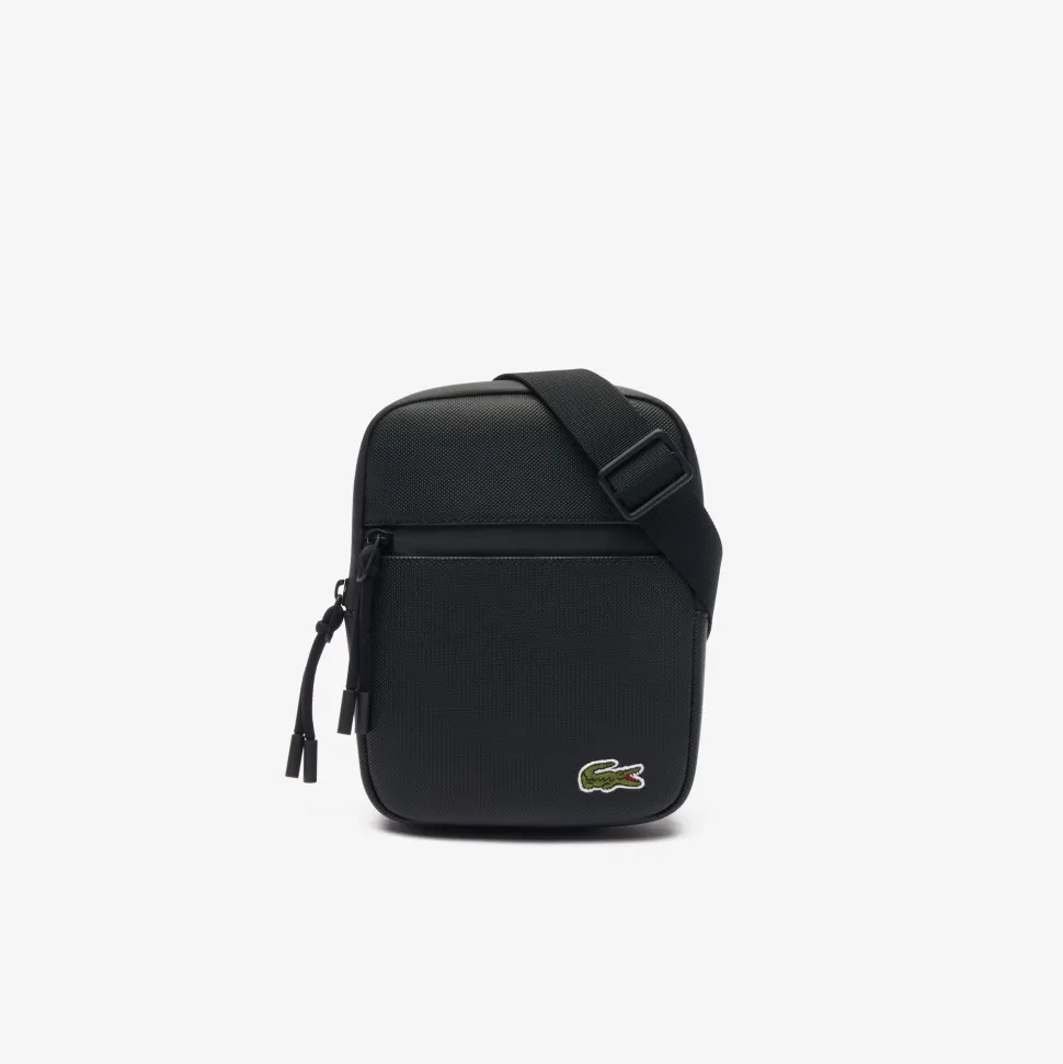 Tämä pieni, litteä, kestävästä kankaasta valmistettu laukku yhdistää toiminnallisuuden ja urbaanin ilmeen. Vetoketjulla ja useilla käytännöllisillä taskuilla varustetussa laukussa on ikoninen pieni vihreä kirjailtu krokotiili. Säädettävän olkahihnan ansiosta voit käyttää sitä malliston bomber-takin tai parkan kanssa.