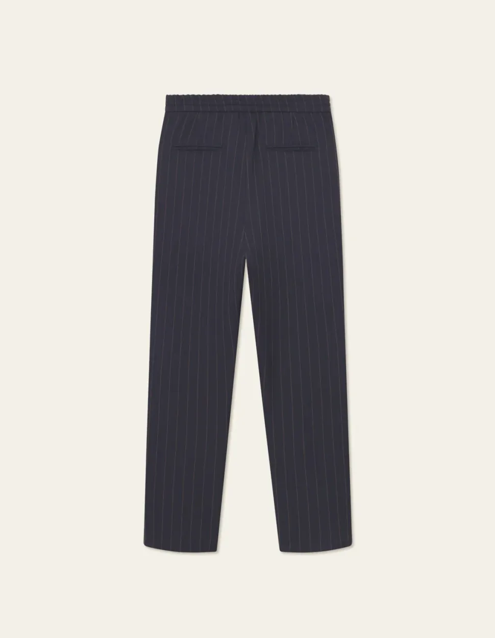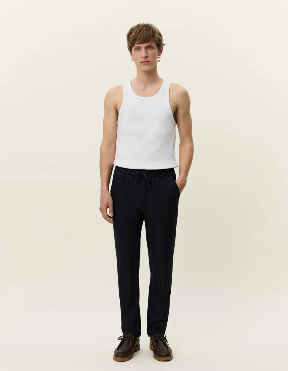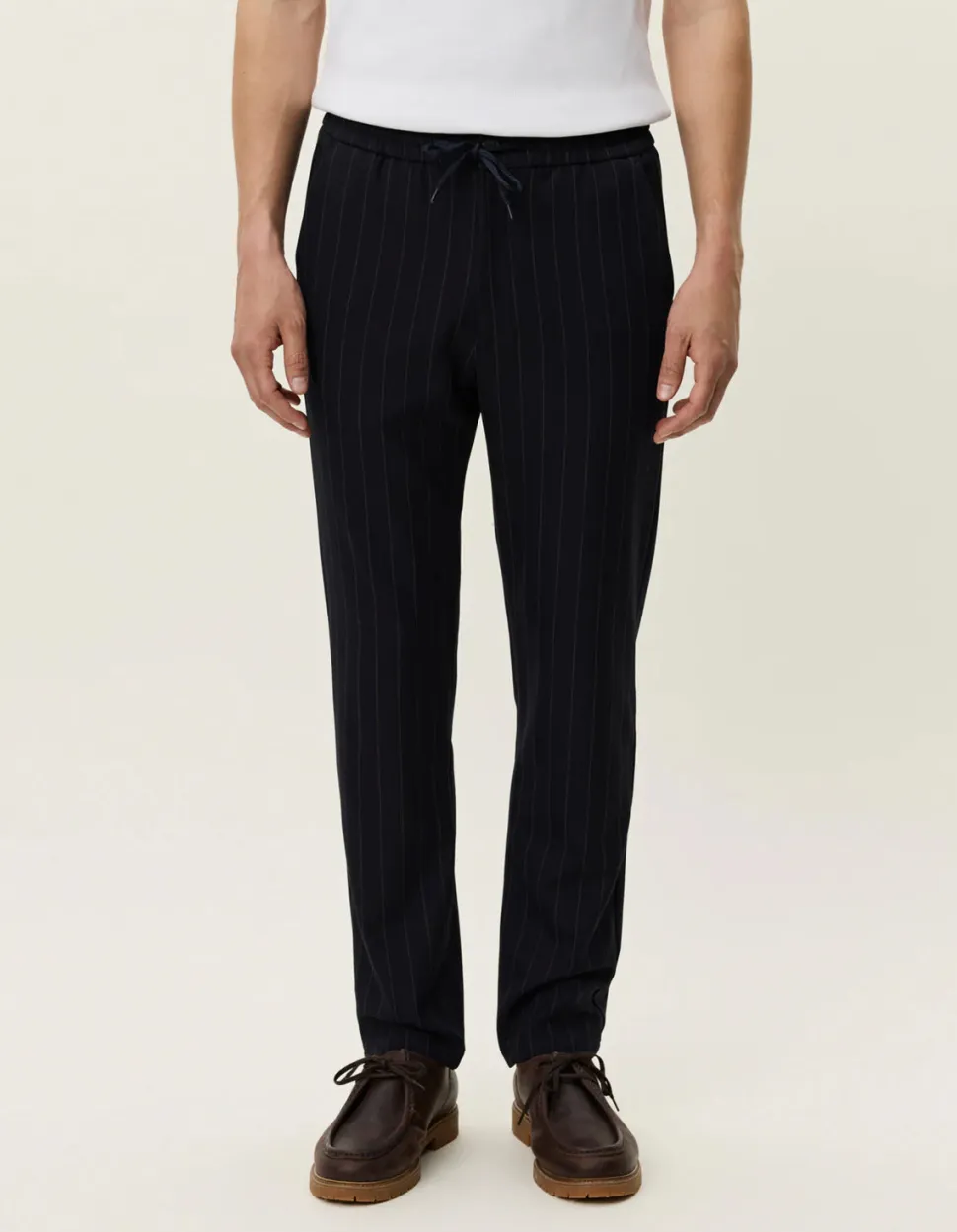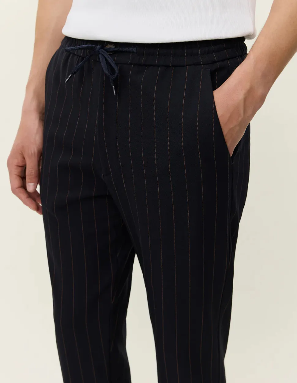 Uusi näkökulma persoonalliseen tyyliin. Como Tapered Pinstripe -housut on valmistettu joustavasta kankaasta, ja niissä on joustava kiristysnyöri vyötäröllä ja kätevät taskut.