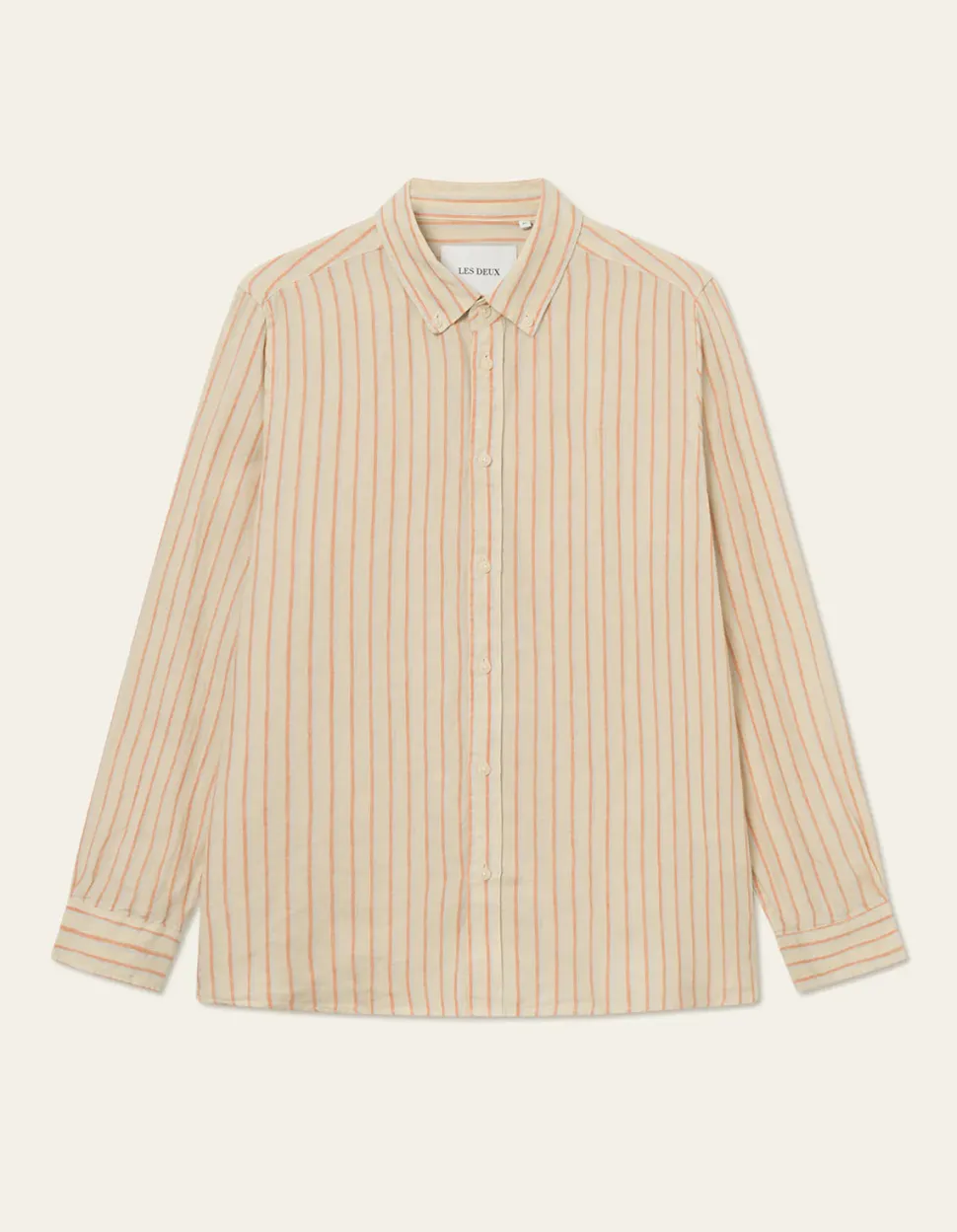 Les Deux miesten Oxford -tyylinen kauluspaita, valmistettu 100% pellavasta. Klassinen napillinen kaulus. Rinnassa kirjailtu logo. Regular fit istuvuus