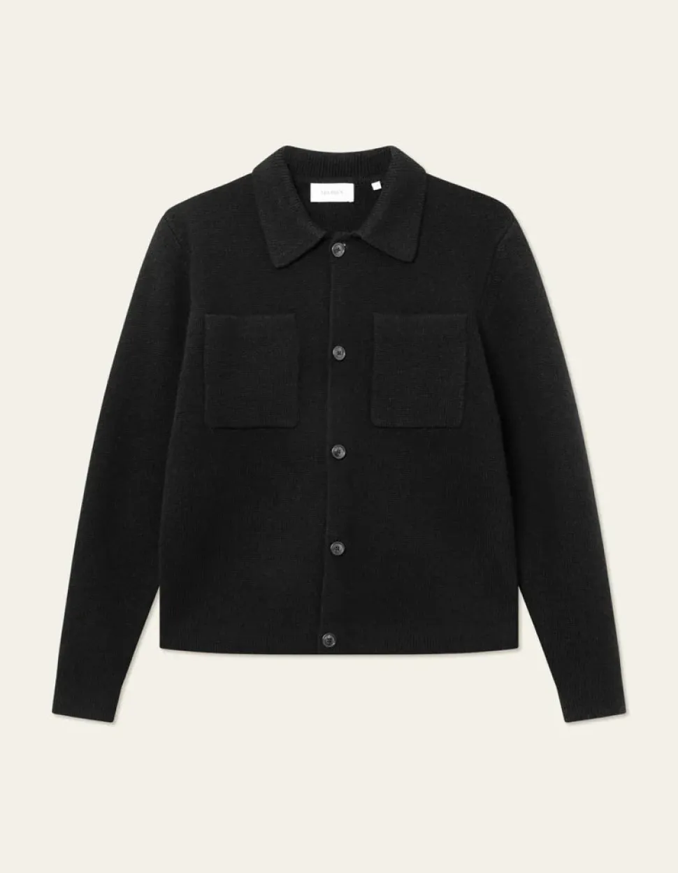 Les Deuxin overshirty tyylinen neuletakki. Klassinen ribattu kaulus, rintataskut ja regular fit istuvuus. 100% merinovillaa.