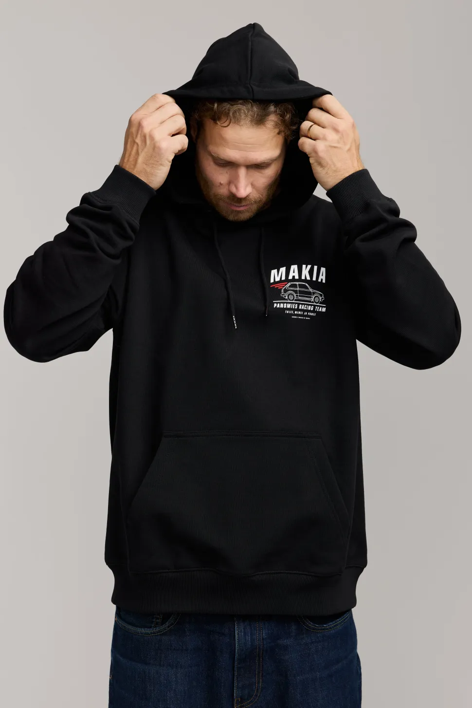 Kummeli Forever by Makia -malliston luomupuuvillainen huppari, jossa printti rinnassa sekä näyttävä Racing-printti selässä. Hupullisessa collegepaidassa klassinen malli kengurutaskulla, sekä hupussa kiristettävä nyöri. Helmassa ja hihansuissa joustavat resorit.