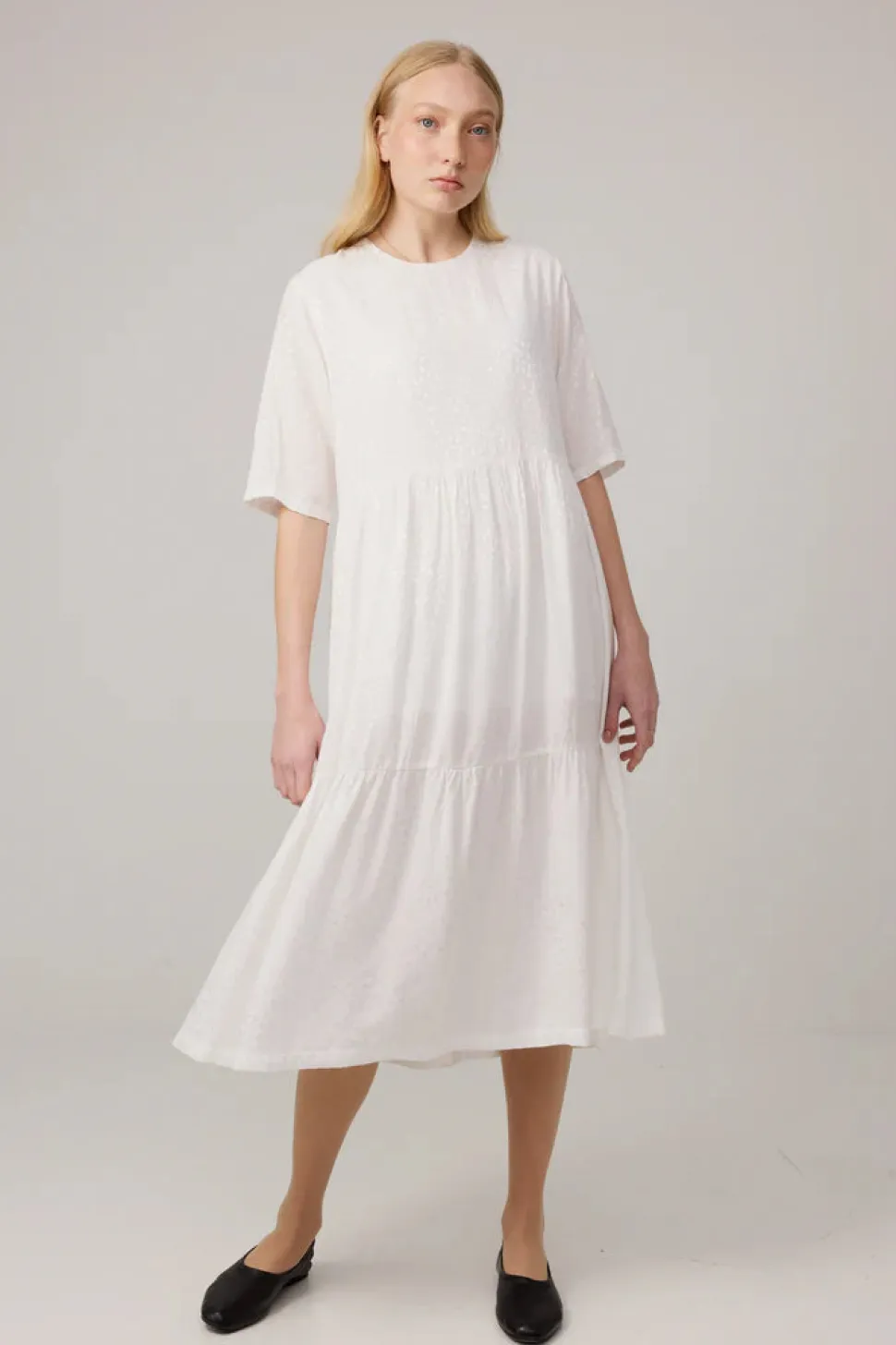 Makia Asteri Dress on naisellinen ja kevyt mekko, joka yhdistää minimalistisen skandinaavisen muotoilun ja arjen käytännöllisyyden. Mekossa on rentoutunut siluetti ja helma, joka laskeutuu kauniisti, mikä tekee siitä mukavan ja monikäyttöisen niin arkeen kuin vapaa-aikaan. Lyhyet hihat ja pyöreä pääntie tekevät mekosta helpon yhdistää kerrospukeutumisen kanssa, esimerkiksi neuletakin tai takin kanssa. Pehmeä ja hengittävä materiaali takaa miellyttävän käyttökokemuksen, ja hillitty design tekee mekosta ajattoman lisän vaatekaappiin.