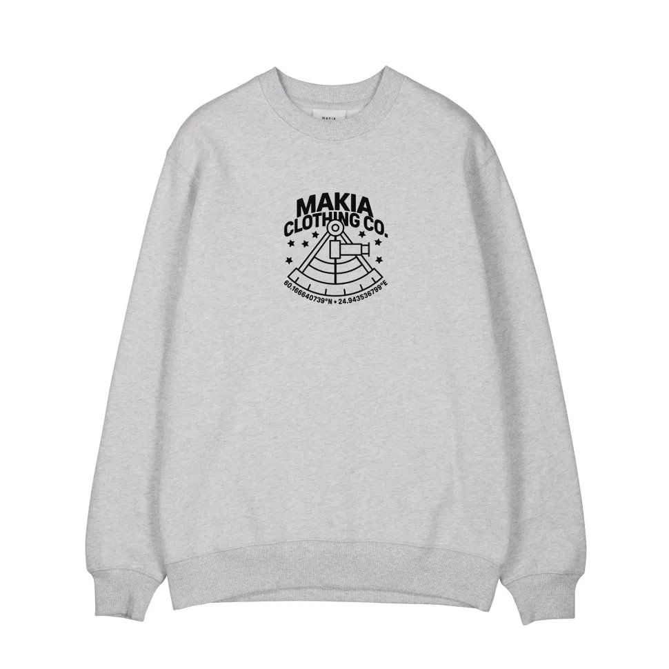 Miesten rento collegepaita sekstantti painatuksella. Ribattu helma, kaula ja hihansuut.
