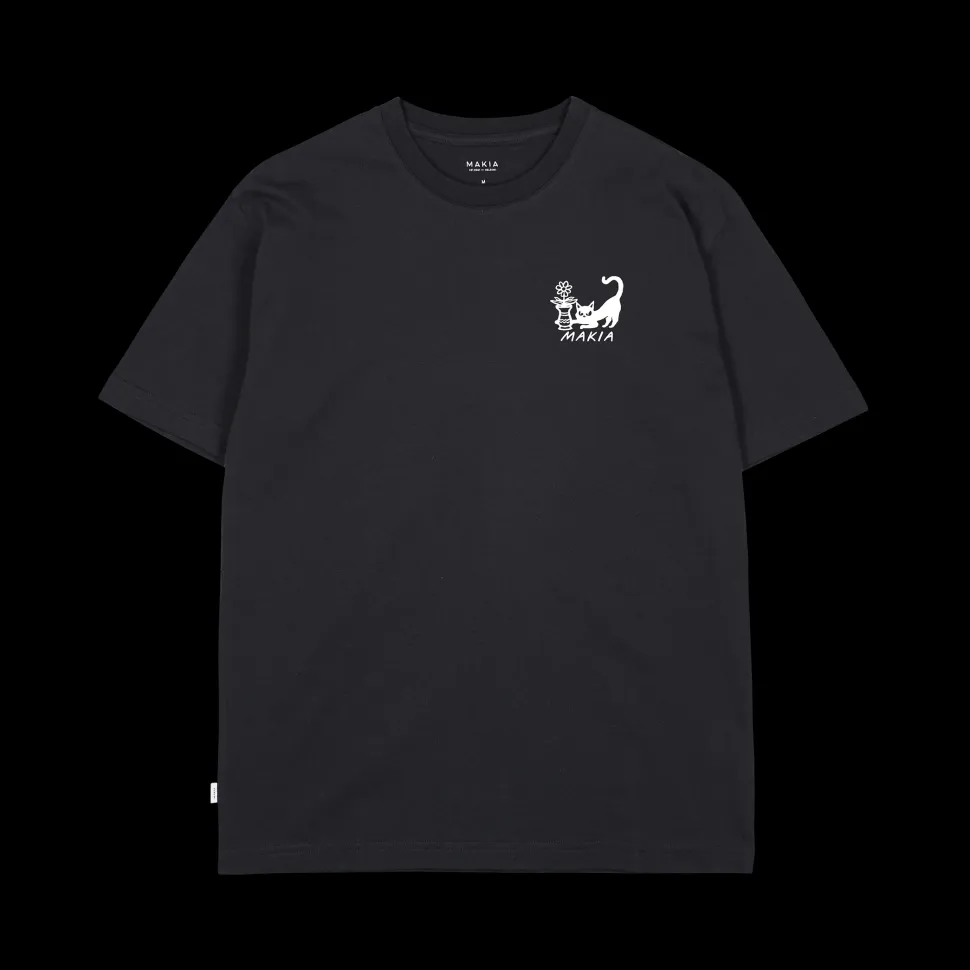Relaxed fit t-paita jossa pieni printti rinnassa ja iso printti selässä.