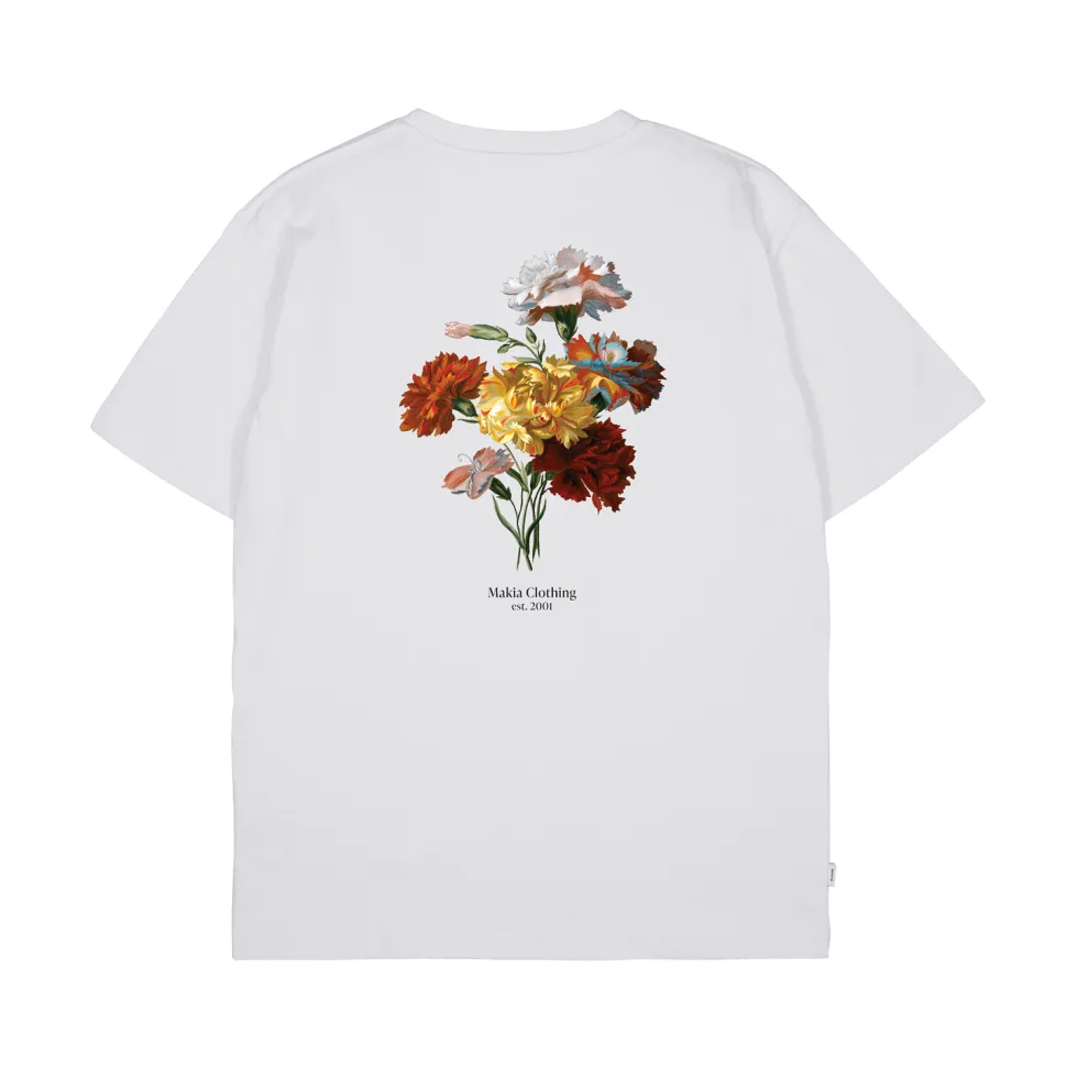 Flower T-paita on rento t-paita, joka on valmistettu 100 % luomupuuvillasta. Takana on painatus, joka perustuu Magnus von Wrightin ”Neilikat”-maalaukseen.