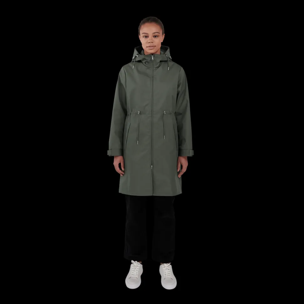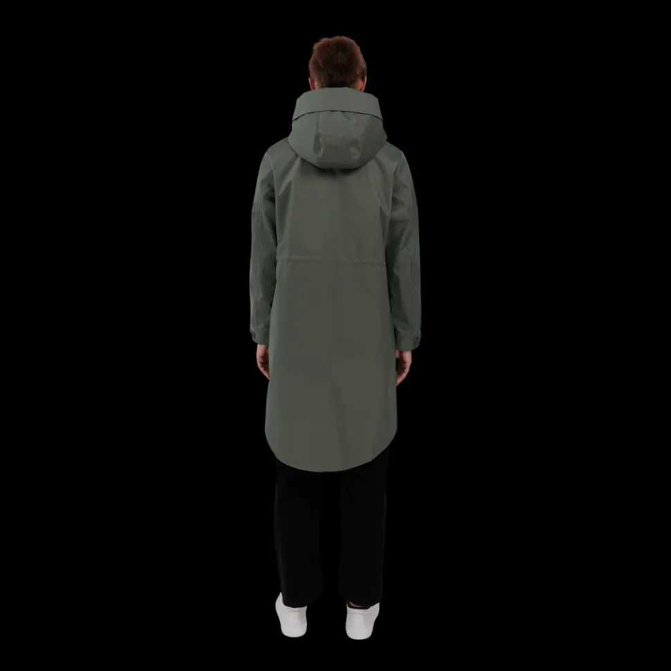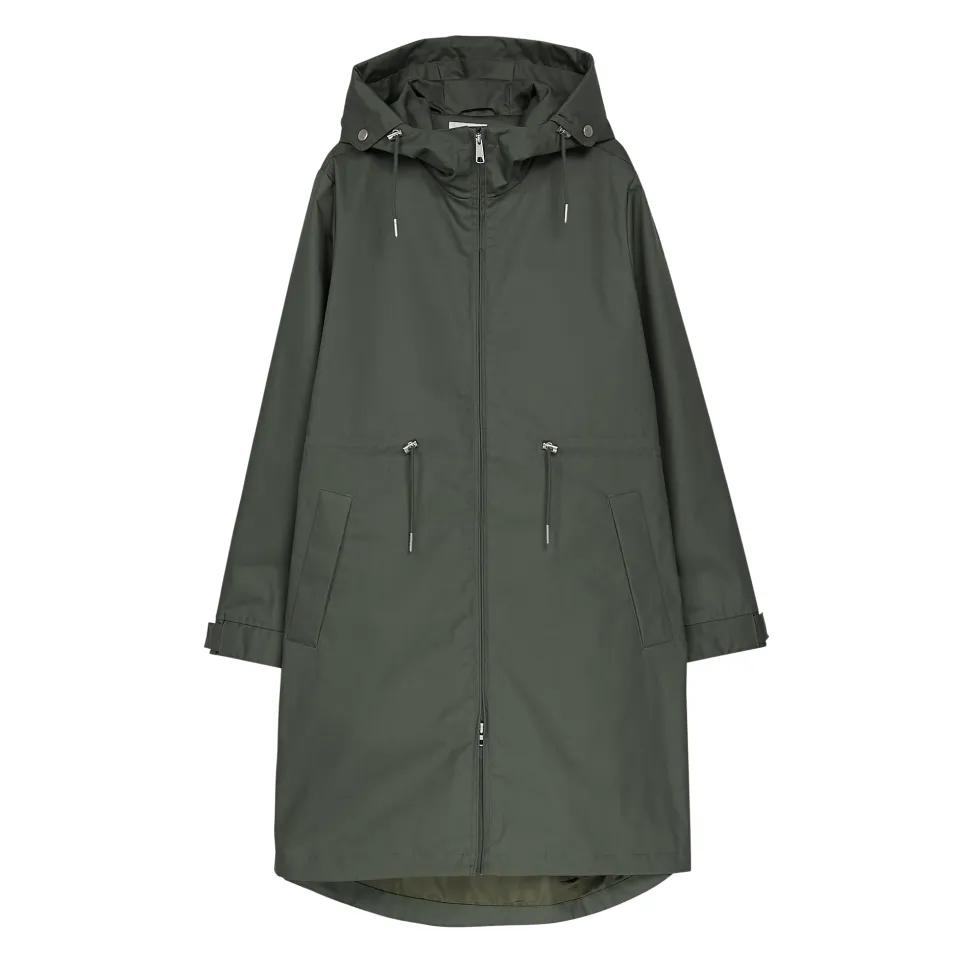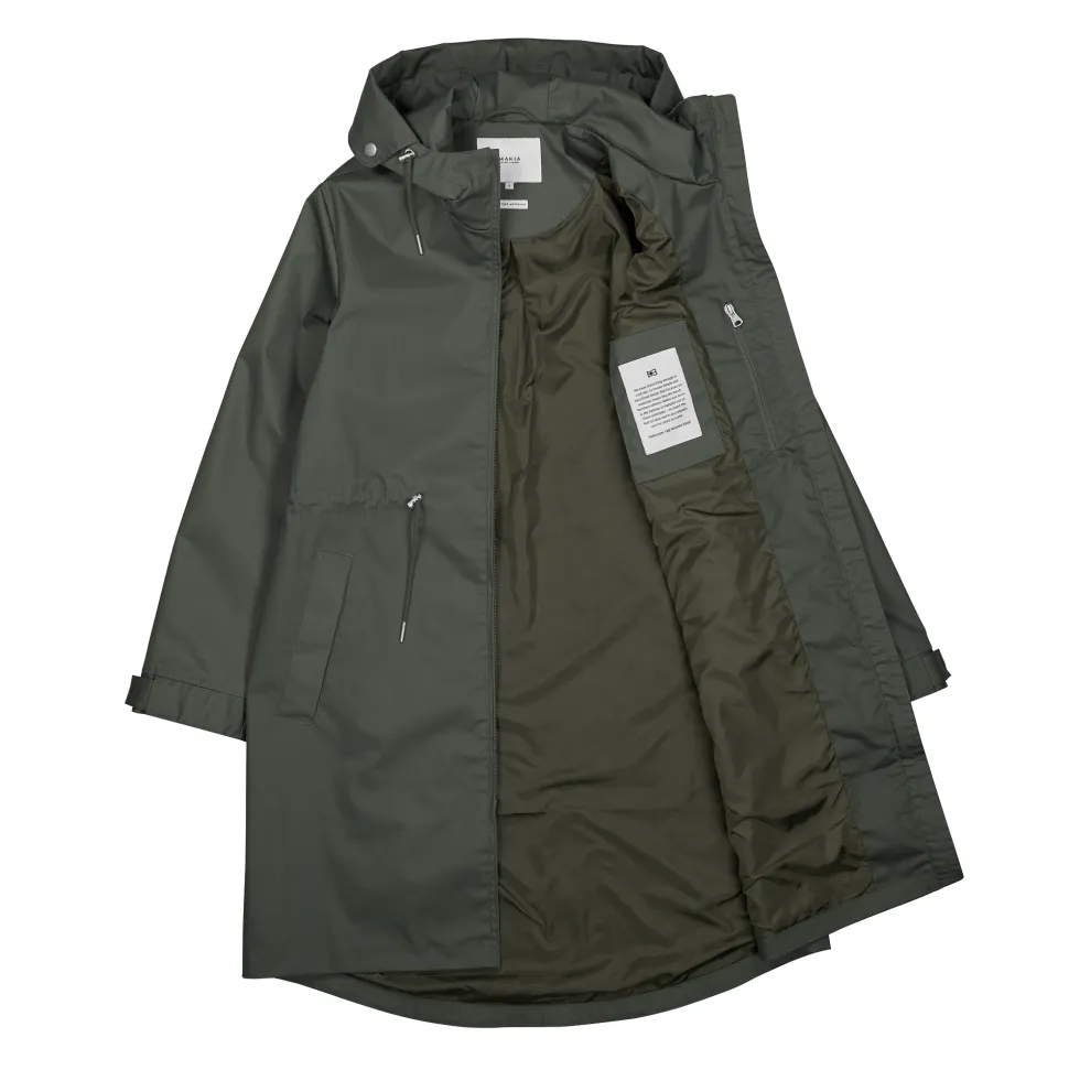 Makian takki on vettähylkivä ja tuulenpitävä. Takissa on huppu ja vyötäröllä kiristys mahdollisuus nauhoilla. Istuvuus on takissa reilu. Kiinnitys on vetoketjulla, joka aukeaa molempiin suuntiin. Hihojen reunassa on kiristys mahdollisuus. Helma on takaa hieman pidempi.