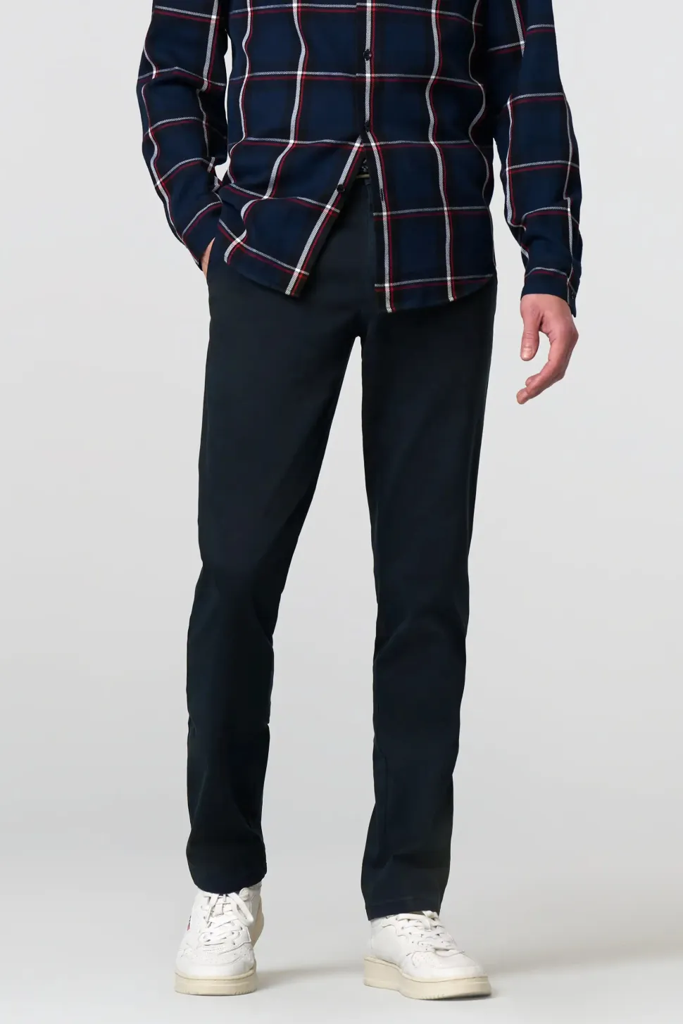 Pyöristetyt ranskalaiset sivutaskut ja lisäkolikkotasku oikeassa taskussa