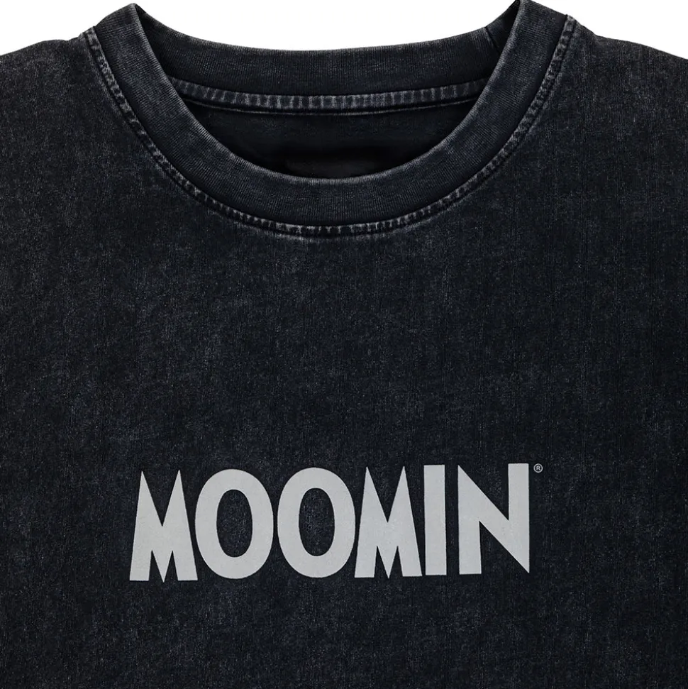 Tyylikkäästi katu-uskottava aikuisten muumiaiheinen T-paita. Väljässä unifit-paidassa on pyöreä pääntie ja lyhyet hihat. Paidan rinnassa on heijastava Moomin-logo. Paidan materiaali on 100 % puuvillasta valmistettua trikookangasta, jossa on vintage wash -käsittely. Paidan pituus olkapäältä helmaan koossa S on 66 cm.