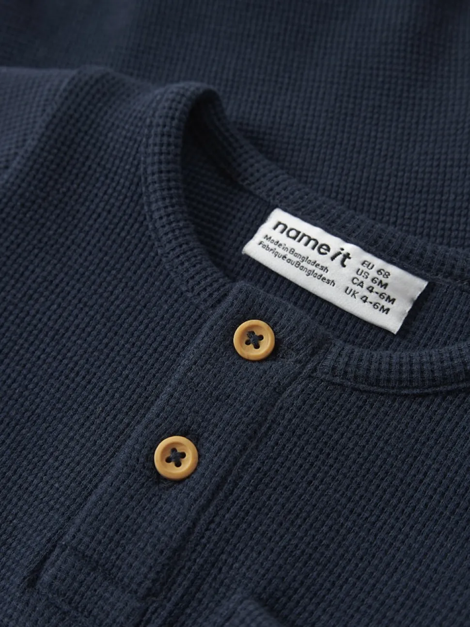 Bodyssa on pyöreä pääntie, pitkät hihat ja käytännöllinen puolinapitus edessä, joka helpottaa pukemista. Haarassa olevat painonapit tekevät vaipanvaihdosta vaivatonta. Rintatasku tuo asuun pienen, tyylikkään yksityiskohdan.