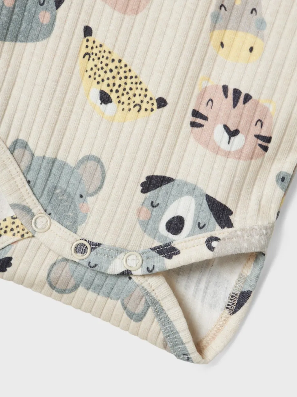 Piristä lapsesi vaatekaappia pehmeillä ja käytännöllisillä bodyilla, jotka sopivat täydellisesti ympärivuotiseen käyttöön. Rib-neuloksessa on pystysuora raidallinen kuvio ja hyvä joustavuus, mikä takaa mukavan tunteen ja ajattoman ilmeen.