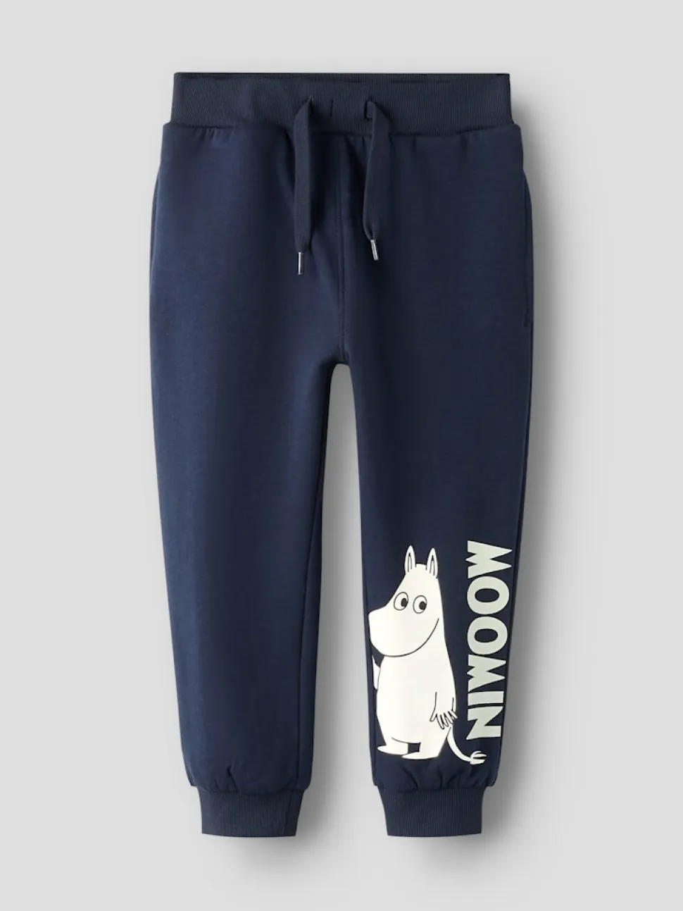 Lasten pehmoiset ja rennot collegehousut, joissa hauska Muumi-printti toisessa lahkeessa. Collegehousujen materiaali on joustavaa ja pehmeää puuvilla-sekoitetta, joka takaa mukavuuden arjen puuhissa. Housuissa joustava kuminauhavyötärö, jonka lisäksi vyötäröllä kiristettävä nauha. Vyötäröllä ja lahkeensuissa joustavat resorit.