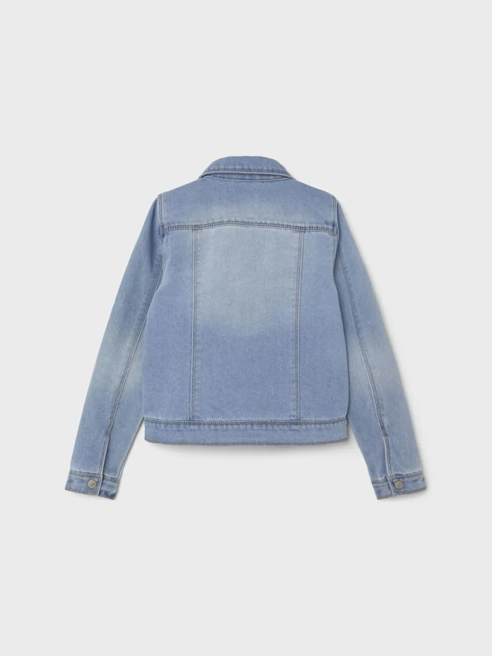 Name It rento takki ohutta ja kulutettua denimiä. Nepparikiinnitys, avotaskut ja läpälliset koristetaskut. Malliltaan hieman muotoonommeltu.