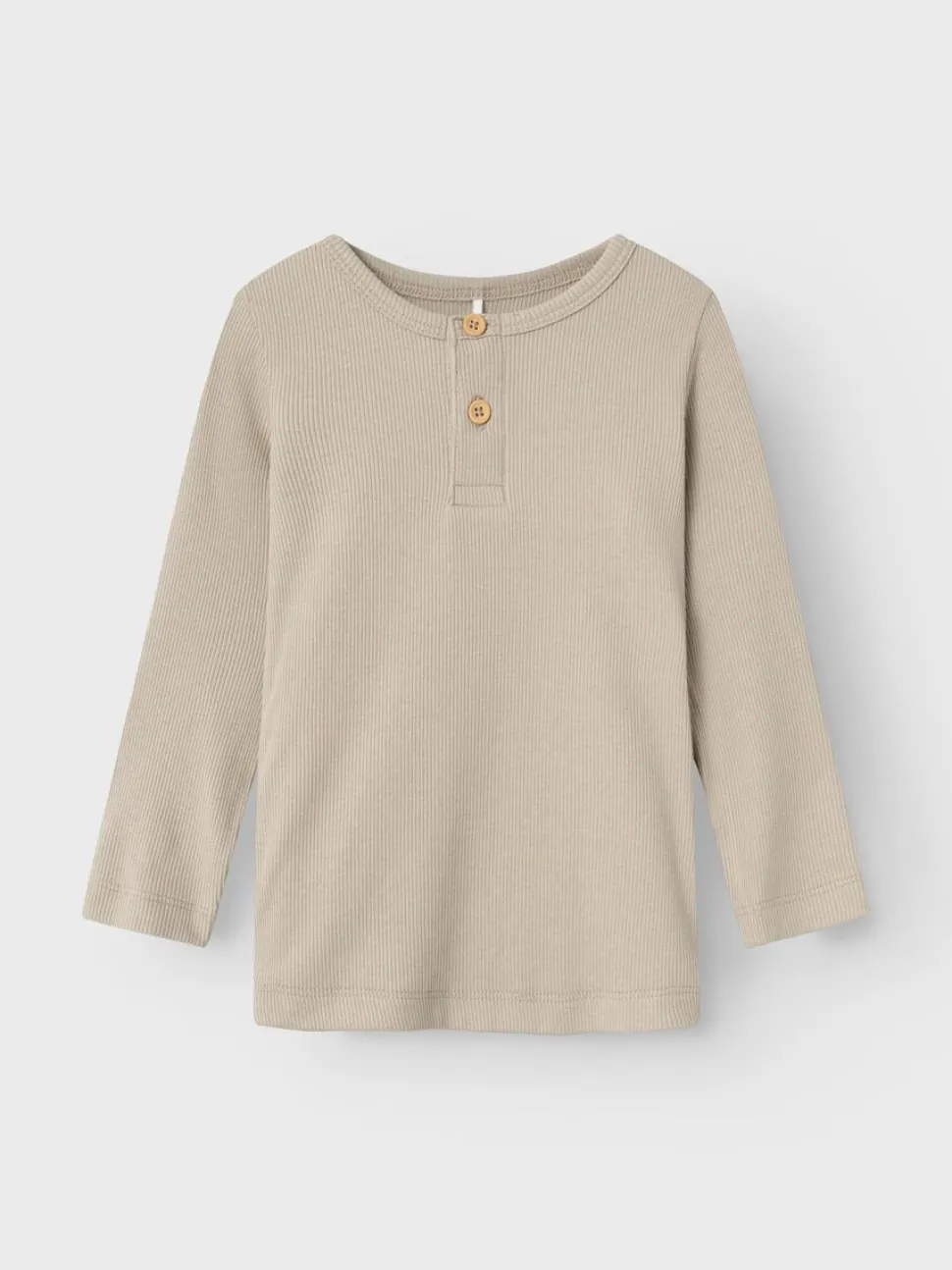 Lasten pitkähihainen trikoopaita, joka on valmistettu pehmeästä ja joustavasta luomupuuvillasekoitteesta. Pyöreä pääntie, ribneulottu pinta ja kaksi nappia edessä.