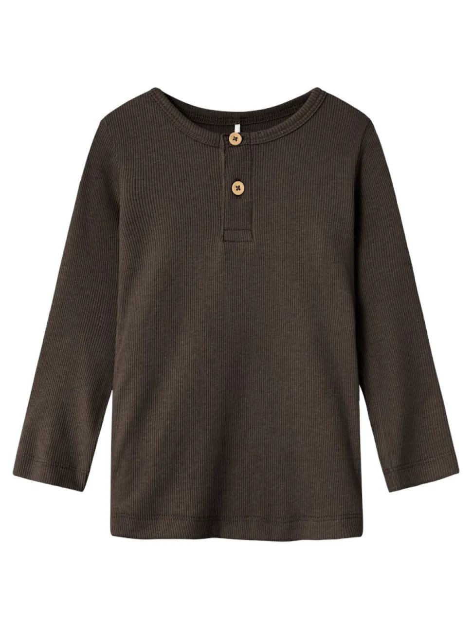 Lasten pitkähihainen trikoopaita, joka on valmistettu pehmeästä ja joustavasta luomupuuvillasekoitteesta. Pyöreä pääntie, ribneulottu pinta ja kaksi nappia edessä.