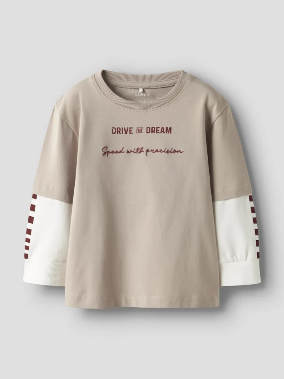 Name It NMMichael LS NREG Top Box on pehmeä ja mukava pitkähihainen paita lapsille. Klassinen malli sopii hyvin arkeen ja kerrospukeutumiseen. Pyöreä pääntie ja joustavat hihansuut tekevät paidasta käytännöllisen ja miellyttävän käyttää. Hillitty sävy “Island Fossil” tekee siitä helposti yhdisteltävän eri asujen kanssa.