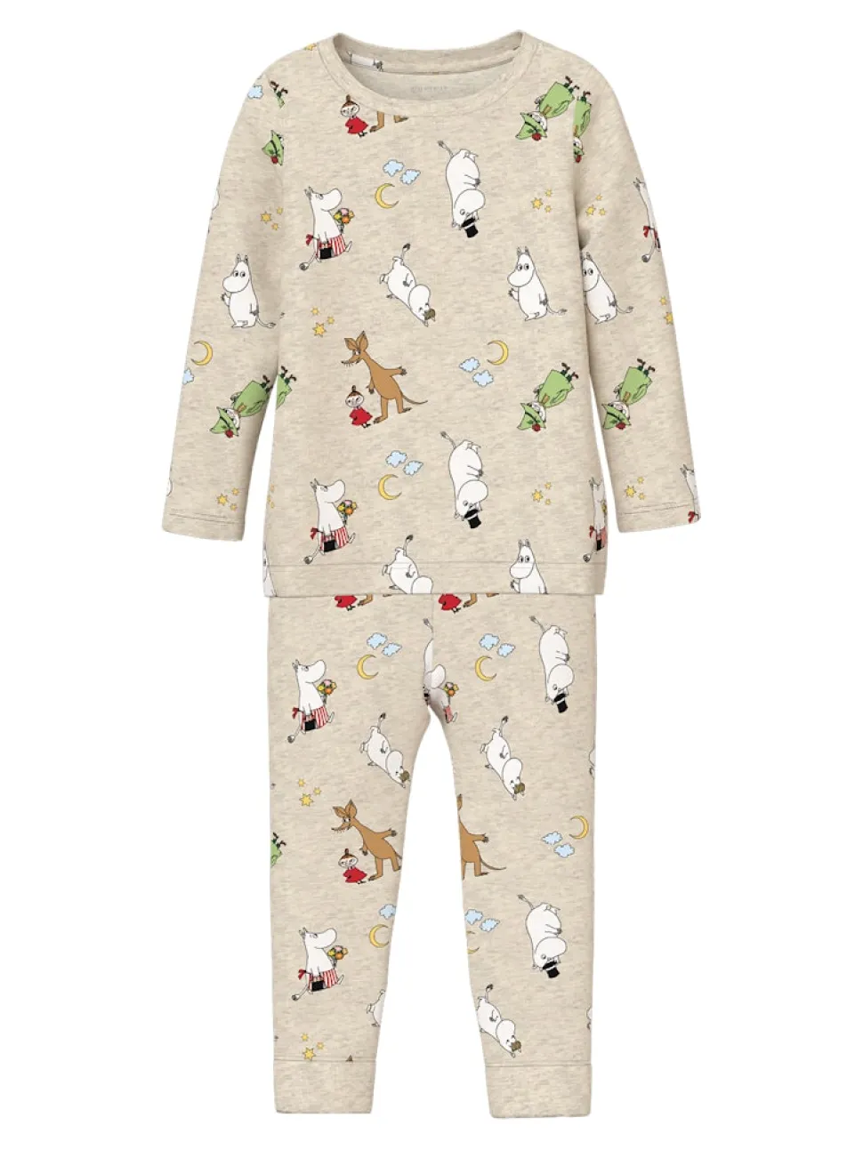 Tämä Name It Mini “Semiol Moomin” Nightset Peyote Melange -yöpuku-setti yhdistää pehmeän, joustavan materiaalin ja suloisen Muumi-kuosin kätevästi samaan pakettiin. Setissä on pitkähihainen paita ja housut joustavalla vyötäröllä, joten liikkuminen ja nukkumaanmeno sujuvat helposti. Materiaali on 95 % puuvillaa ja 5 % elastaania, mikä takaa mukavuuden ja hyvän istuvuuden yön aikana. Tulevina kylminä aamuina tämä yöasu on mukava ja käytännöllinen valinta lapsen vaatekaappiin.