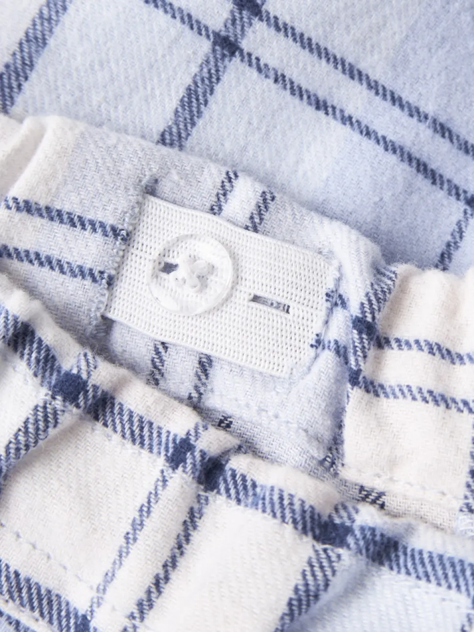 Name Itin ihanan pehmeät ja rennot yöhousut takaavat mukavat illan ja aamun puuhat sekä lempeät yöunet. Housuissa on rento istuvuus ja suorat, väljät lahkeet. Vyötäröllä on säädettävä kuminauha sekä kiristettävä nauha. Pyjamahousut on valmistettu pehmeäksi harjatusta puuvillaisesta flanellikankaasta.