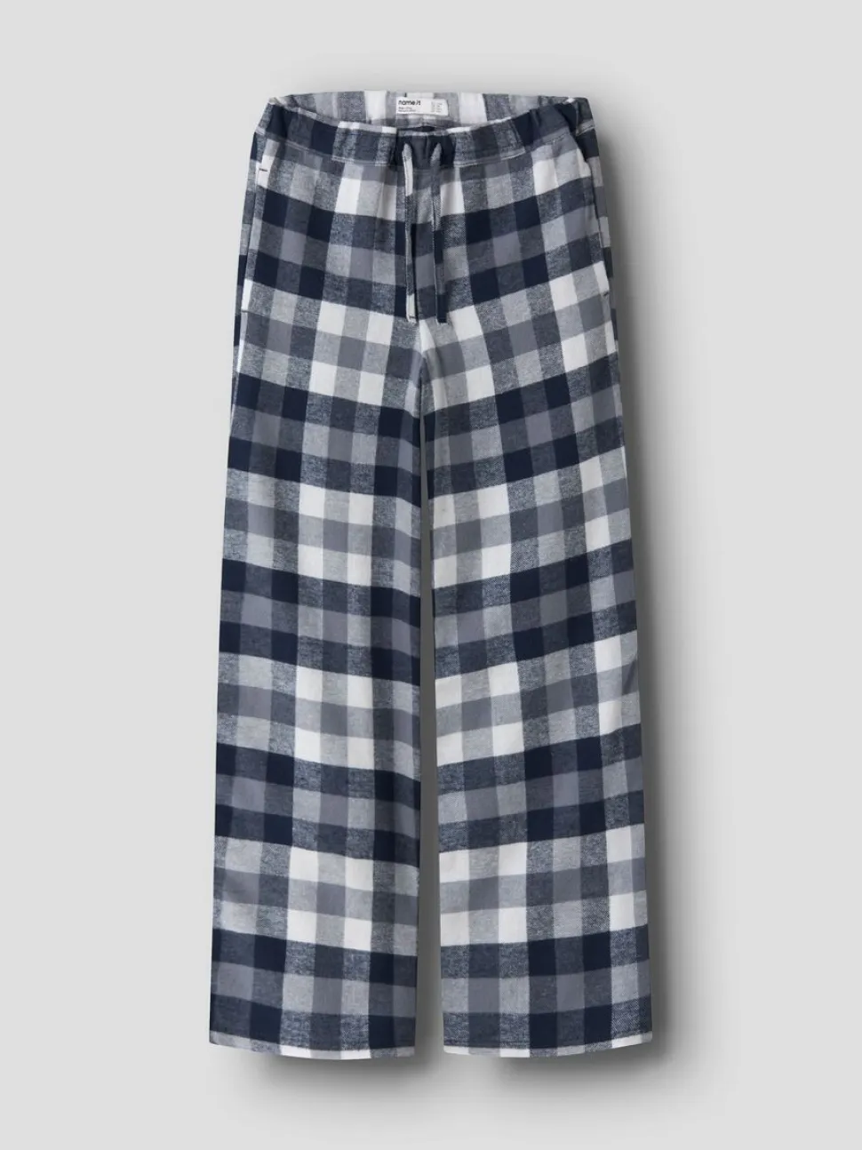 Name Itin ihanan pehmeät ja rennot yöhousut takaavat mukavat illan ja aamun puuhat sekä lempeät yöunet. Housuissa on rento istuvuus ja suorat, väljät lahkeet. Vyötäröllä on säädettävä kuminauha sekä kiristettävä nauha. Pyjamahousut on valmistettu pehmeäksi harjatusta puuvillaisesta flanellikankaasta.