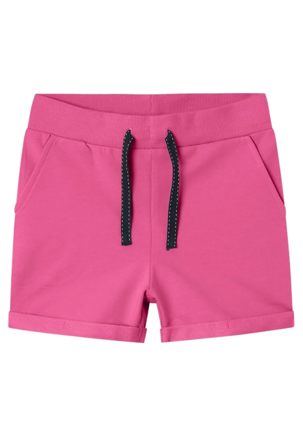 Lasten collegeshortsit, joustava vyötärö ja säätönyöri. Käännetyt lahkeensuut. Taskut edessä.
