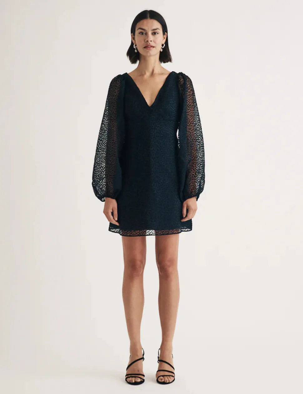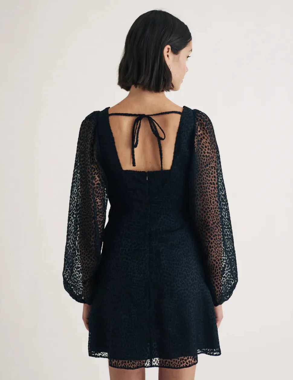 Täydellinen mekko monenlaisiin tilaisuuksiin. Sen leikkisät, volyymipitoiset hihat ja avoin selkä, joka on sidottu siististi rusetilla, tekevät siitä näyttävän valinnan.