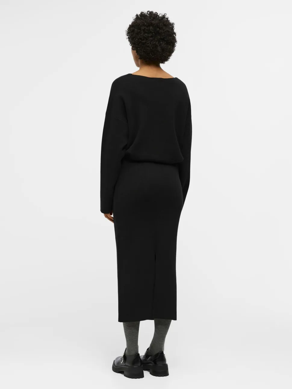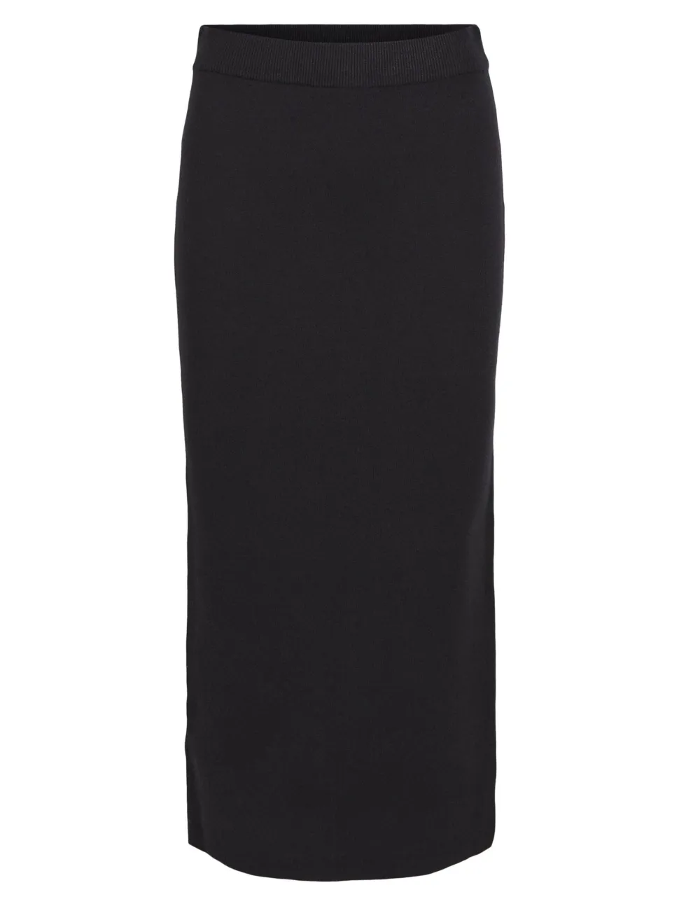 – Neulottu maxihame – Korkea vyötärö – Ribbireuna – Pieni halkio yksityiskohta – Normaali istuvuus – Valmistettu vastuullisemmista kankaista