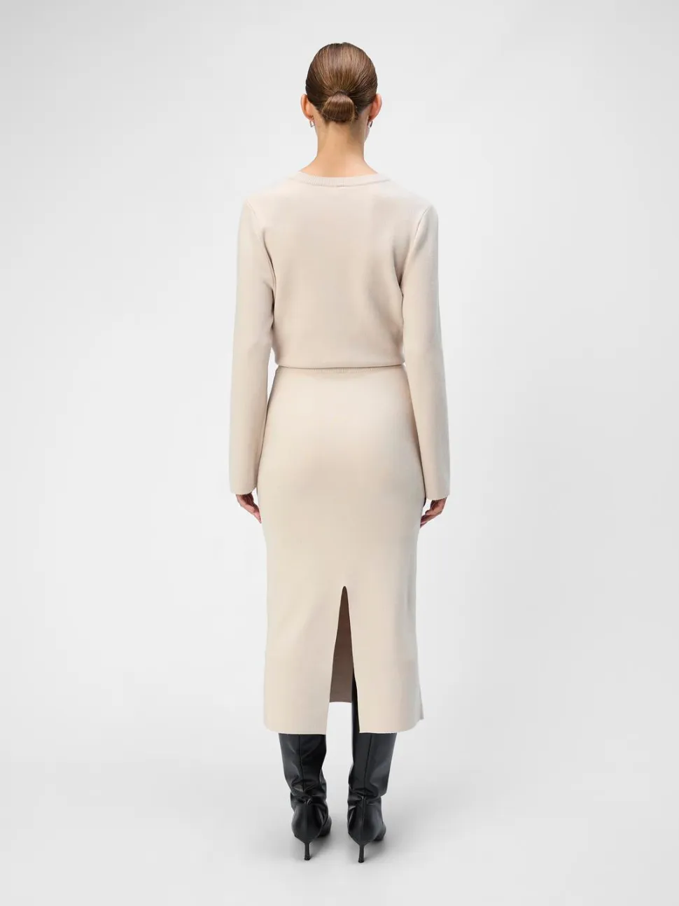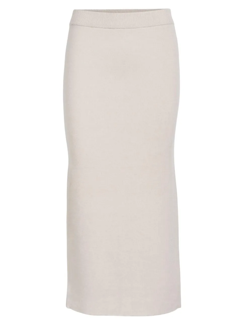 – Neulottu maxihame – Korkea vyötärö – Ribbireuna – Pieni halkio yksityiskohta – Normaali istuvuus – Valmistettu vastuullisemmista kankaista