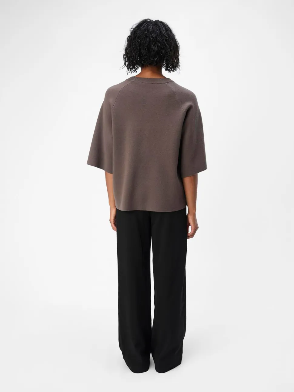 Oversized‑mallinen neulepusero, jossa pyöreä pääntie, raglan‑hihat ja väljähkö, lyhyt pituus. Rennon leikkauksen ansiosta pusero istuu mukavasti monenlaisen asun kanssa.