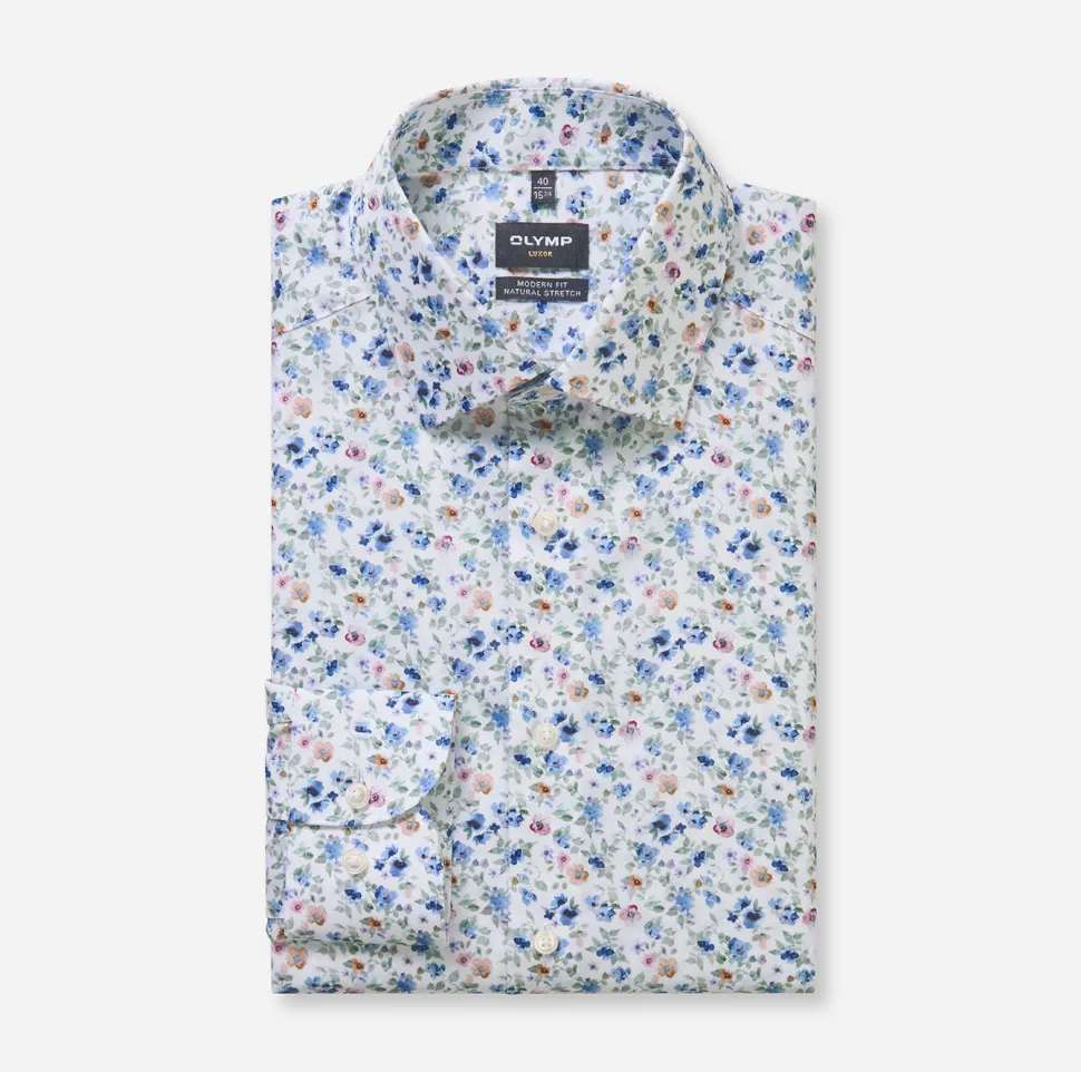 Modern fit ‑leikkaus istuu nykyaikaisesti ja kevyesti muotoillen, joten paita tuntuu mukavalta käytössä mutta näyttää silti huolitellulta. Klassinen New Kent ‑kaulus toimii erinomaisesti niin solmion kanssa kuin ilman, ja rintatasku hienovaraisella brodeerauksella lisää pieneen yksityiskohtaan tyylikkyyttä
