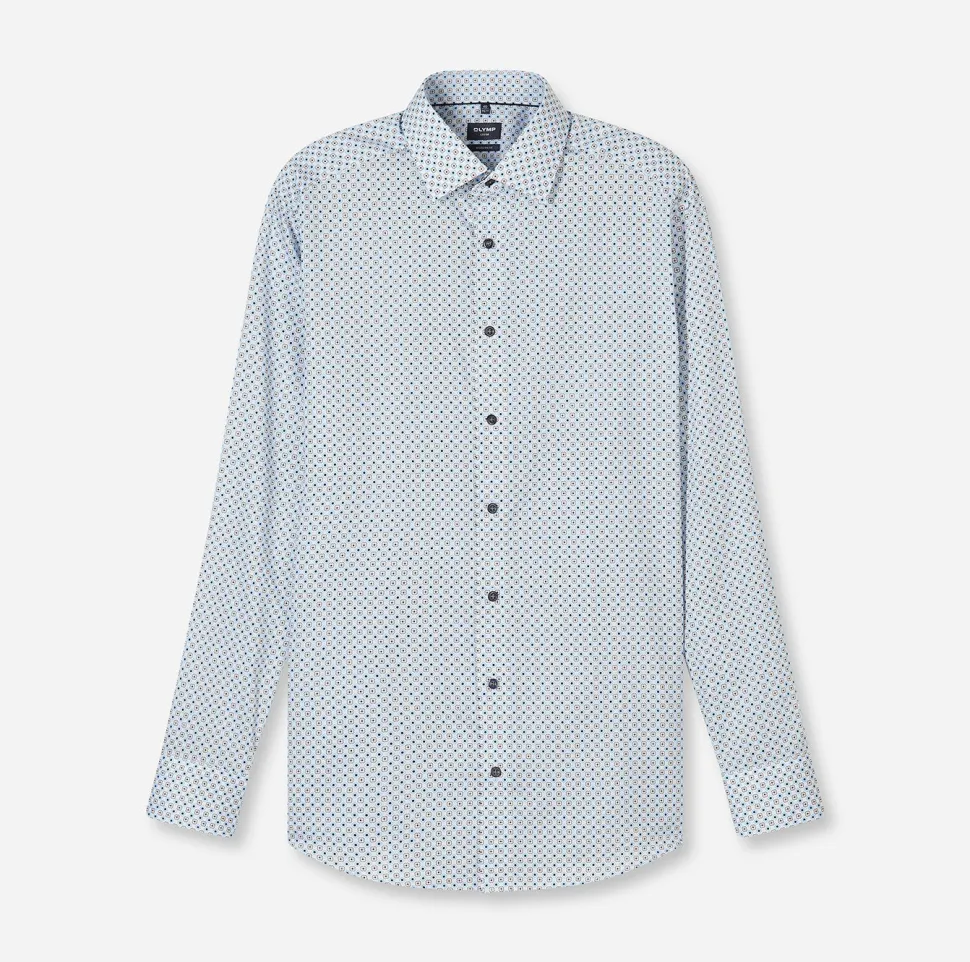 Klassinen miesten kauluspaita. OLYMP Luxor Modern Fit ‑malli on kevyesti muotoiltu moderniin siluettiin, joka korostaa istuvuutta muttei kiristä. Paita on valmistettu hengittävästä 100 % puuvillasta, joka tuntuu miellyttävältä iholla ja pitää muotonsa hyvin. Non‑iron‑viimeistely tekee paidasta ryppyjä kestävän ja huolettoman: se näyttää siistiltä heti pesun jälkeen ilman silitystä. Paidassa on tyylikäs New Kent ‑kaulus ja pitkät hihat, jotka sopivat niin pukukokonaisuuteen kuin smart casual ‑asuunkin. Laadukas materiaali on OEKO‑TEX® STANDARD 100 ‑sertifioitu, mikä kertoo vastuullisuudesta ja turvallisuudesta ihoa vasten.