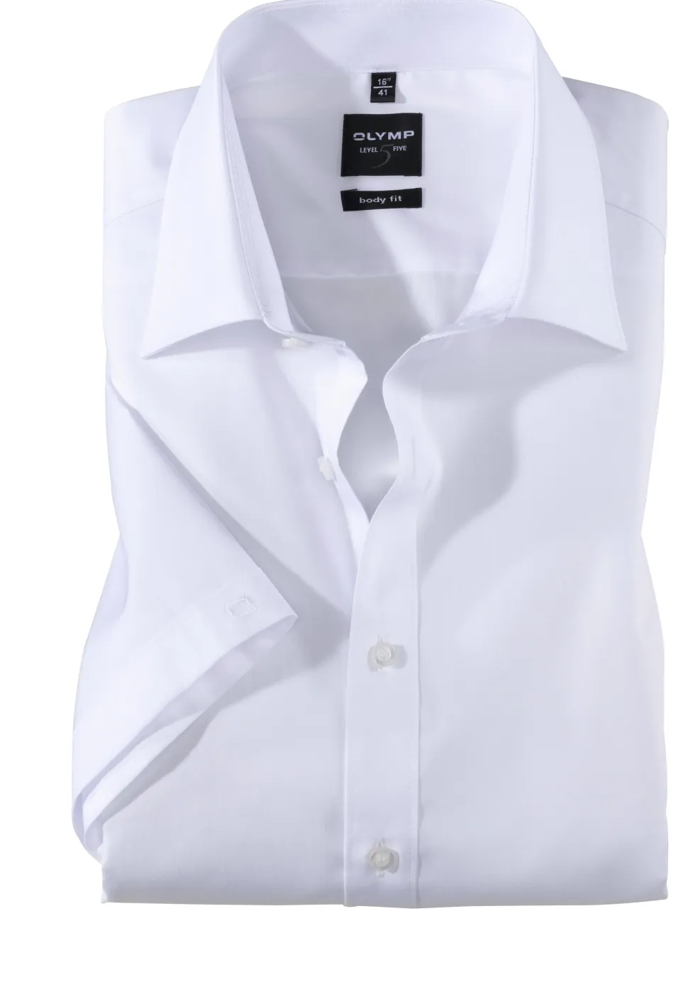 Olymp a-mitoituksen lyhythihainen kauluspaita – Materiaali 97% puuvilla 3% elastaani – Silittämättä siisti – Vyötärön ympärysmitta 98cm koossa 39/40