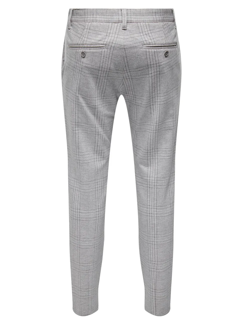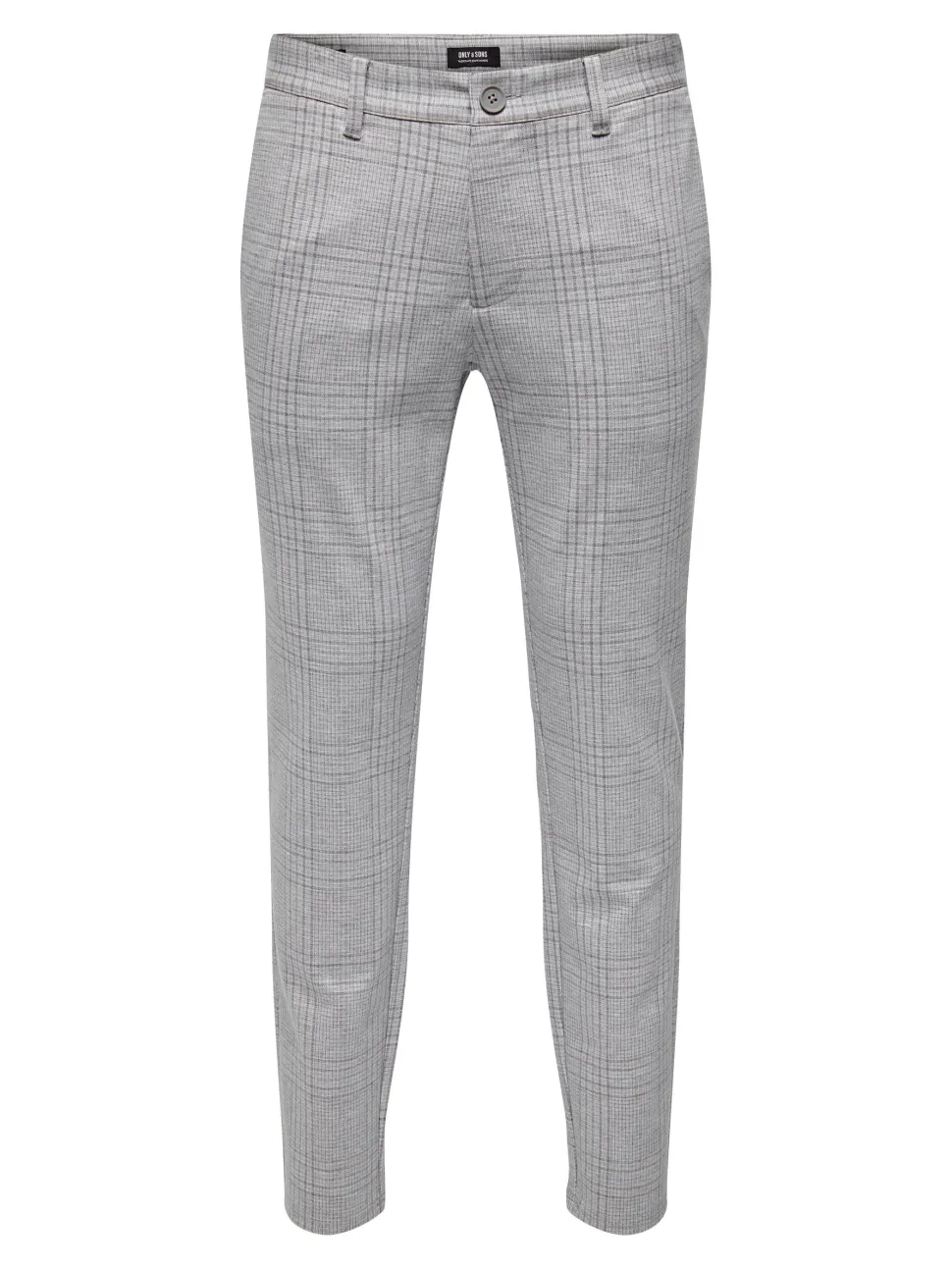 Miesten trendikkäät ruudulliset housut, kapea istuvuus, kapenevat lahkeet. Edessä vetoketju, taskut sivuilla ja takana.