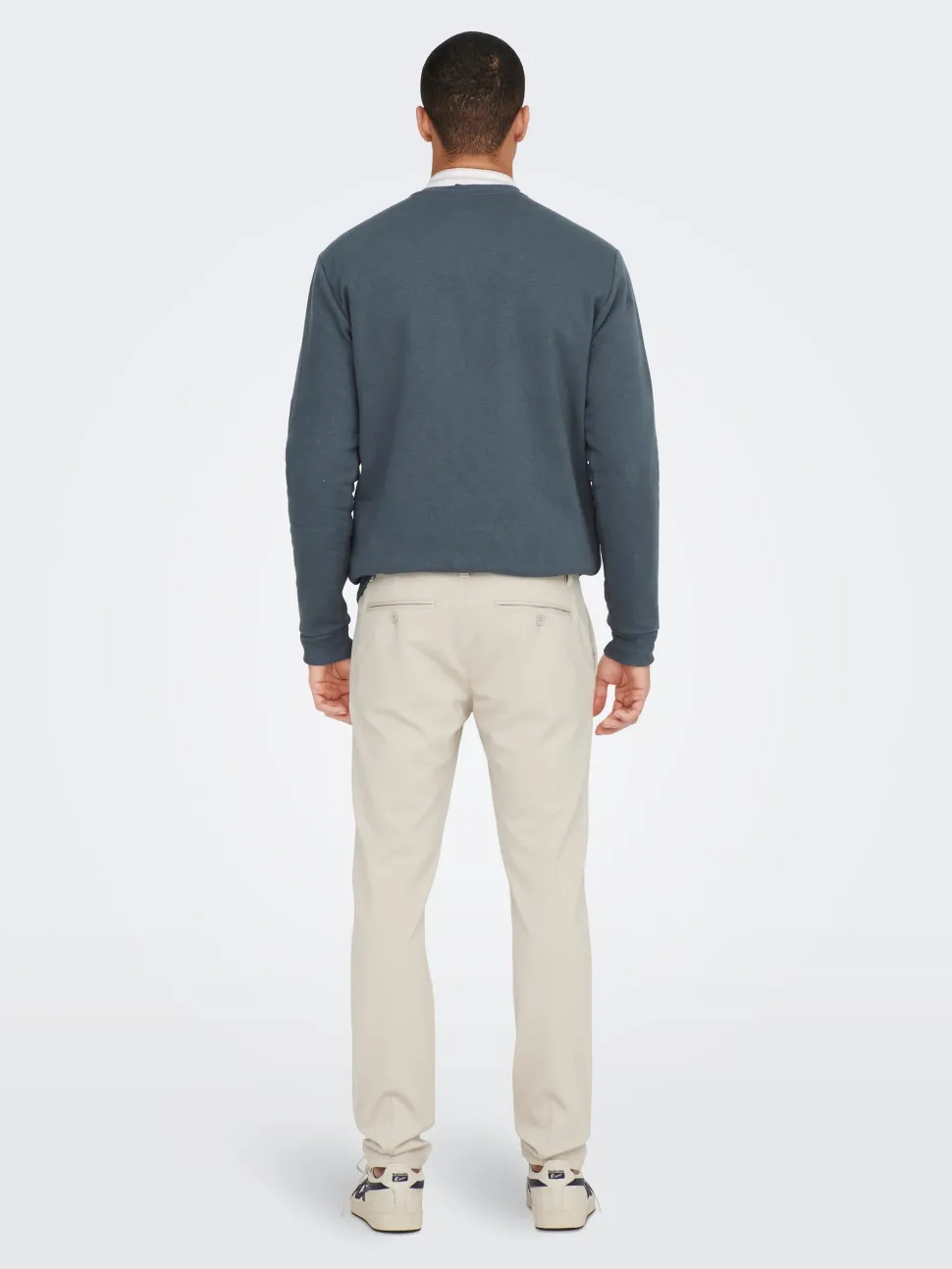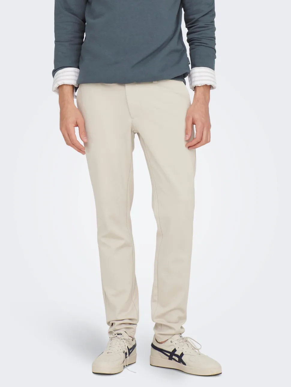 Only&Sons miesten tyylikkäät housut joustavaa materiaalia. Vetoketjukiinnitys, napilliset takataskut. . Valmistusmaa Kamputsea.