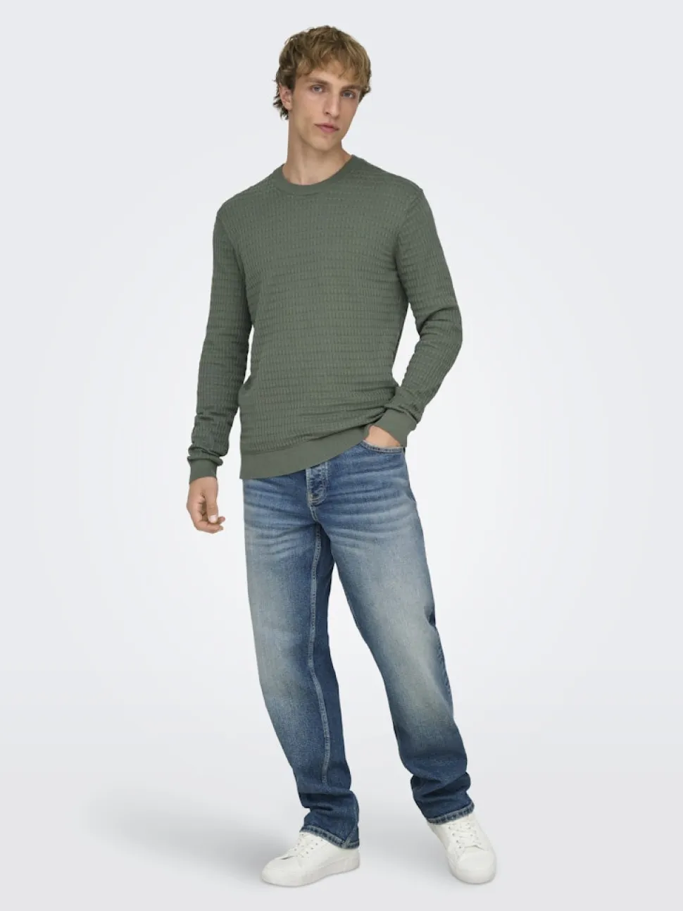 ONLY & SONSin regular fit -neulepusero on vaatekaapin luottovaate, joka yhdistää rennon mukavuuden ja huolitellun ilmeen. Klassinen pyöreä pääntie ja selkeälinjainen muotoilu tekevät neuleesta helpon yhdistää niin farkkuihin kuin siistimpiin housuihin.