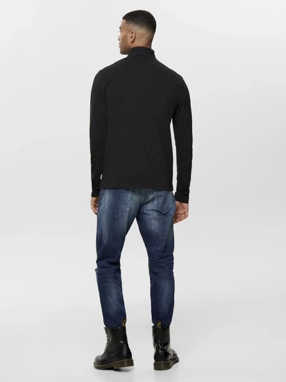 Miesten pitkähihainen tirkoinen poolopaita, roll neck kauluksella,