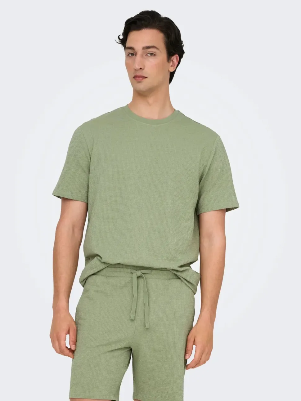 Only and Sons miesten shortsit, K KIAN REG SEERSUCKER SHORTS Seagrass