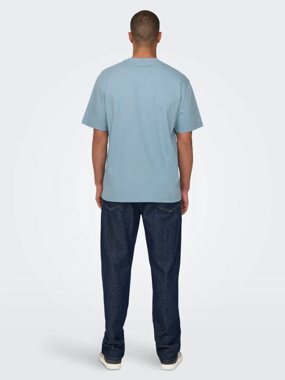 T-paita on miellyttävää puuvillaa ja mitoituksena hiukan leveähkö.