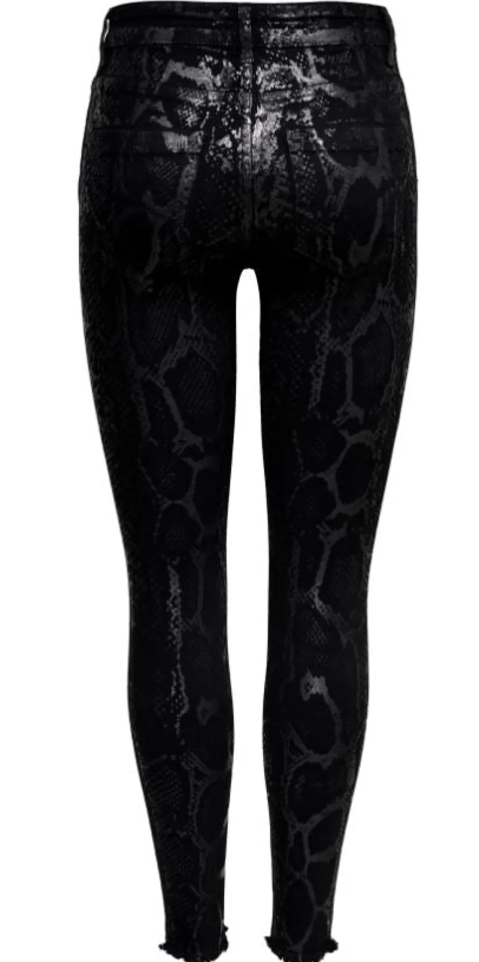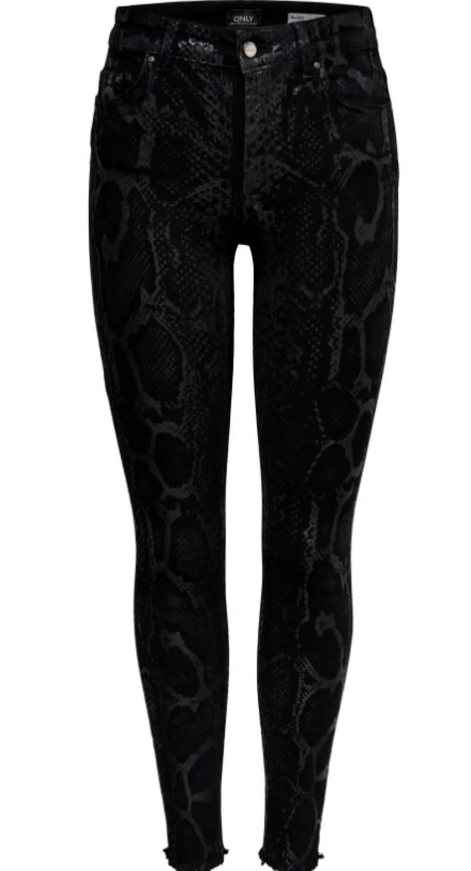 Onlyn tyylikkäät, käärmekuosiset housut. Normaali vyötärönkorkeus, kapeat malliltaan. Lahkeensuut huolittelemattomat. Valmistusmaa Turkki.